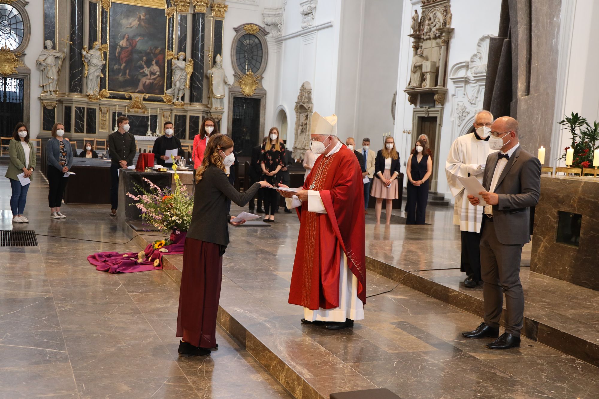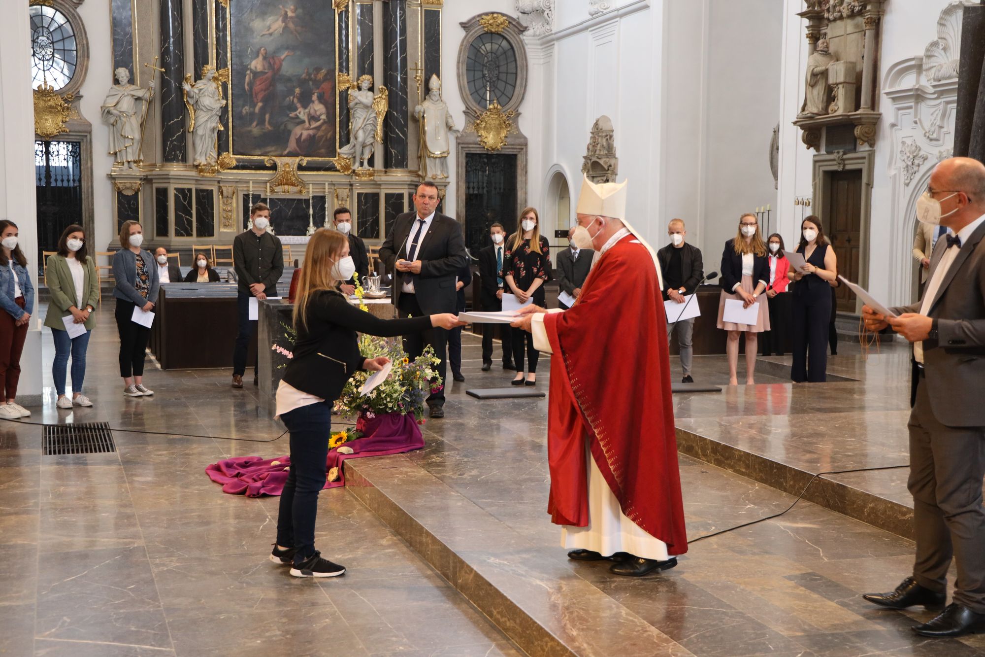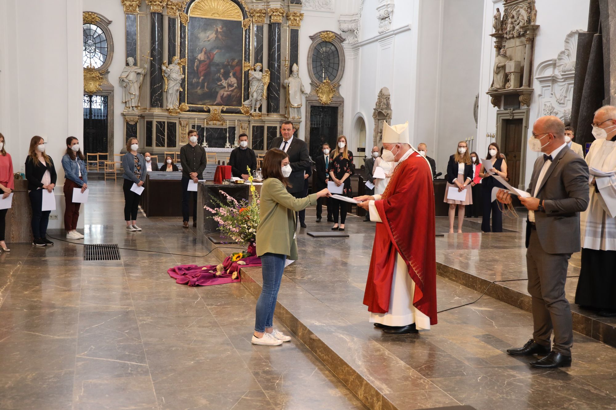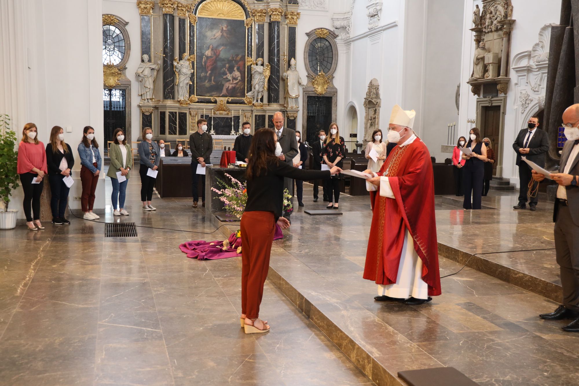 Für das Lehramt an Mittelschulen bekamen die Missio canonica: Miriam Abert aus Haßfurt, Julia Ferdinand aus Schweinfurt, Elena Holzwert aus Bad Neustadt, Julia Meyer aus Gerbrunn, Valerie Paul aus Bergtheim, Bastian Rößner aus Zeil am Main, Philipp Schell aus Würzburg und David Seifried aus Aschaffenburg.