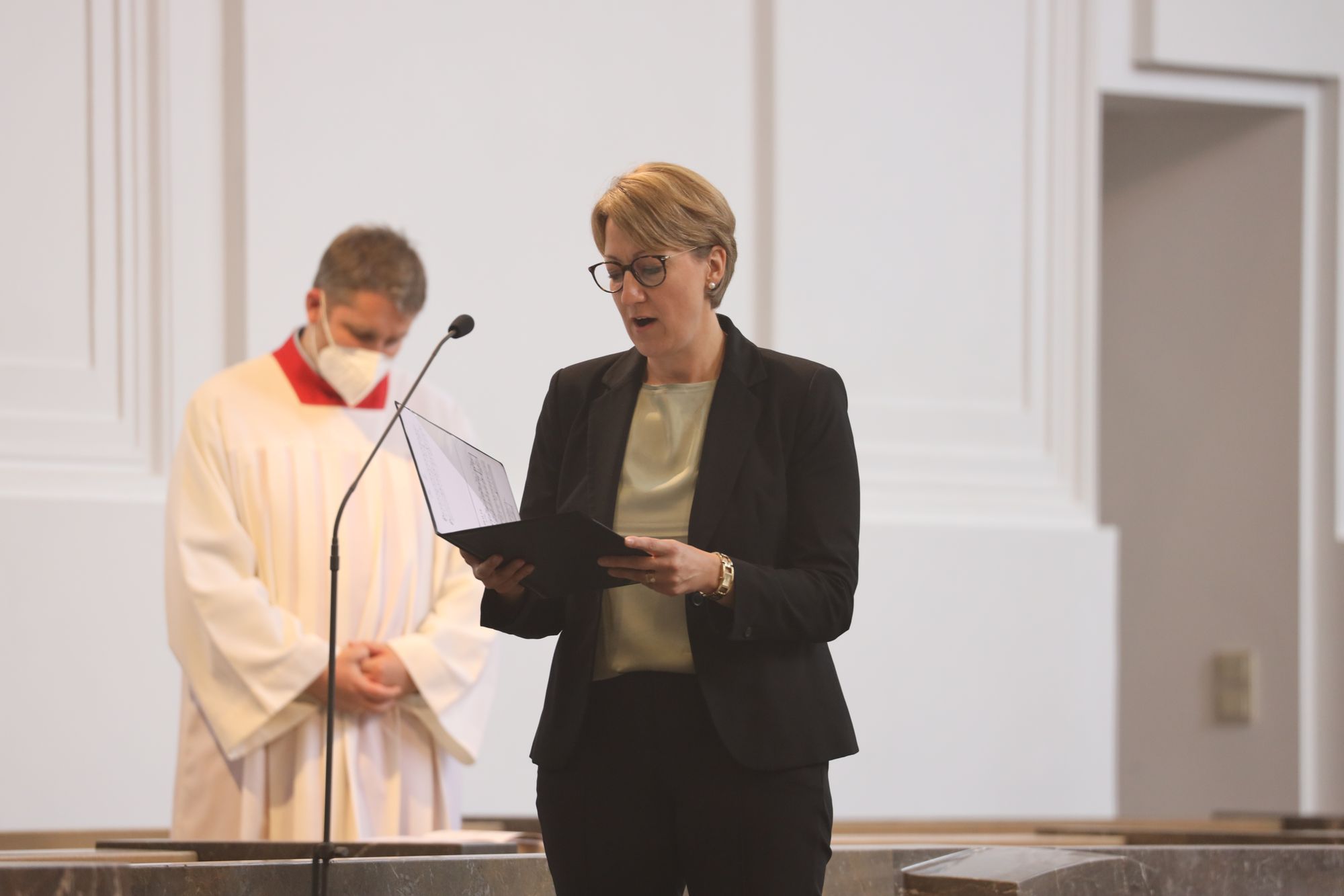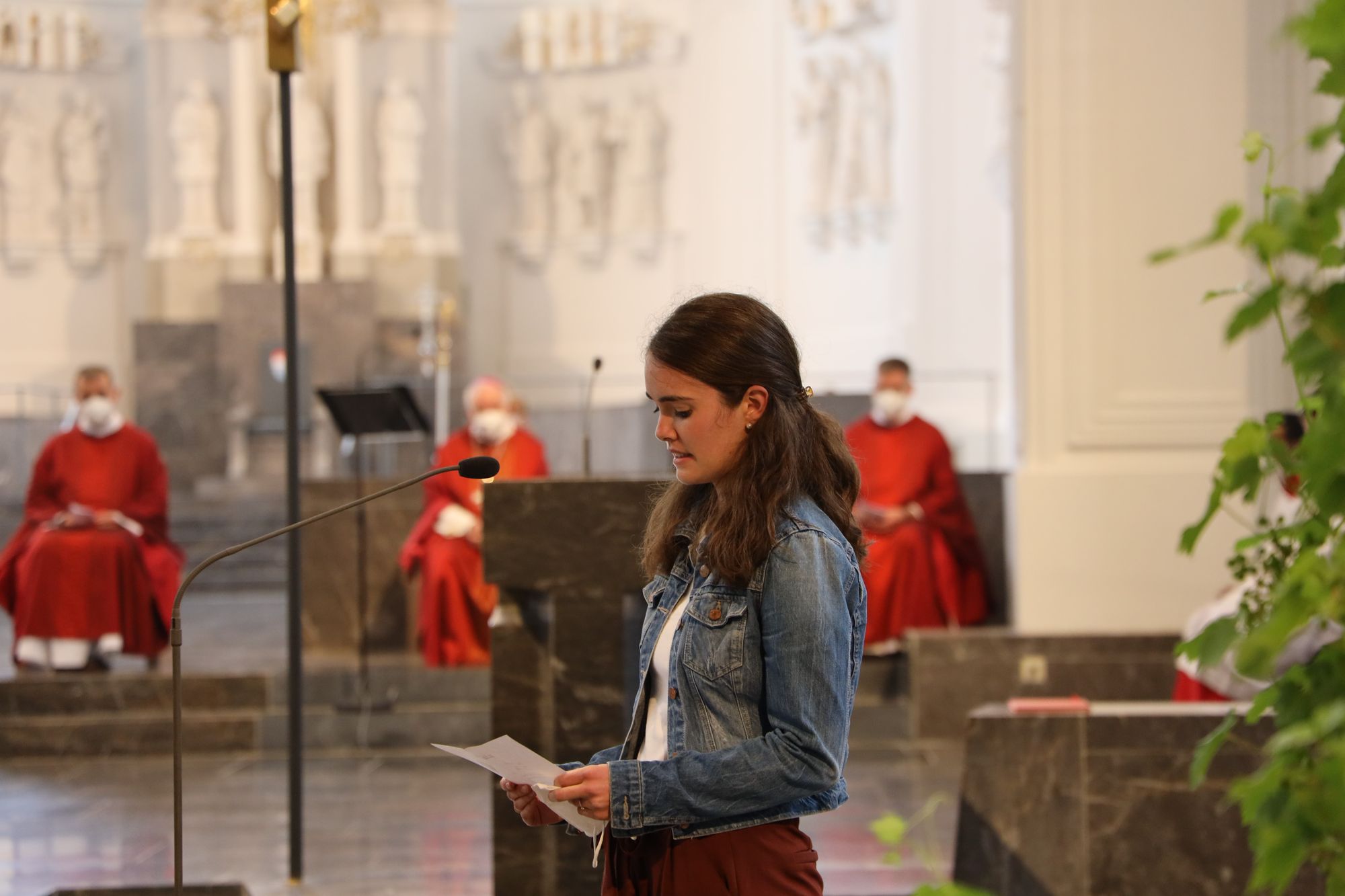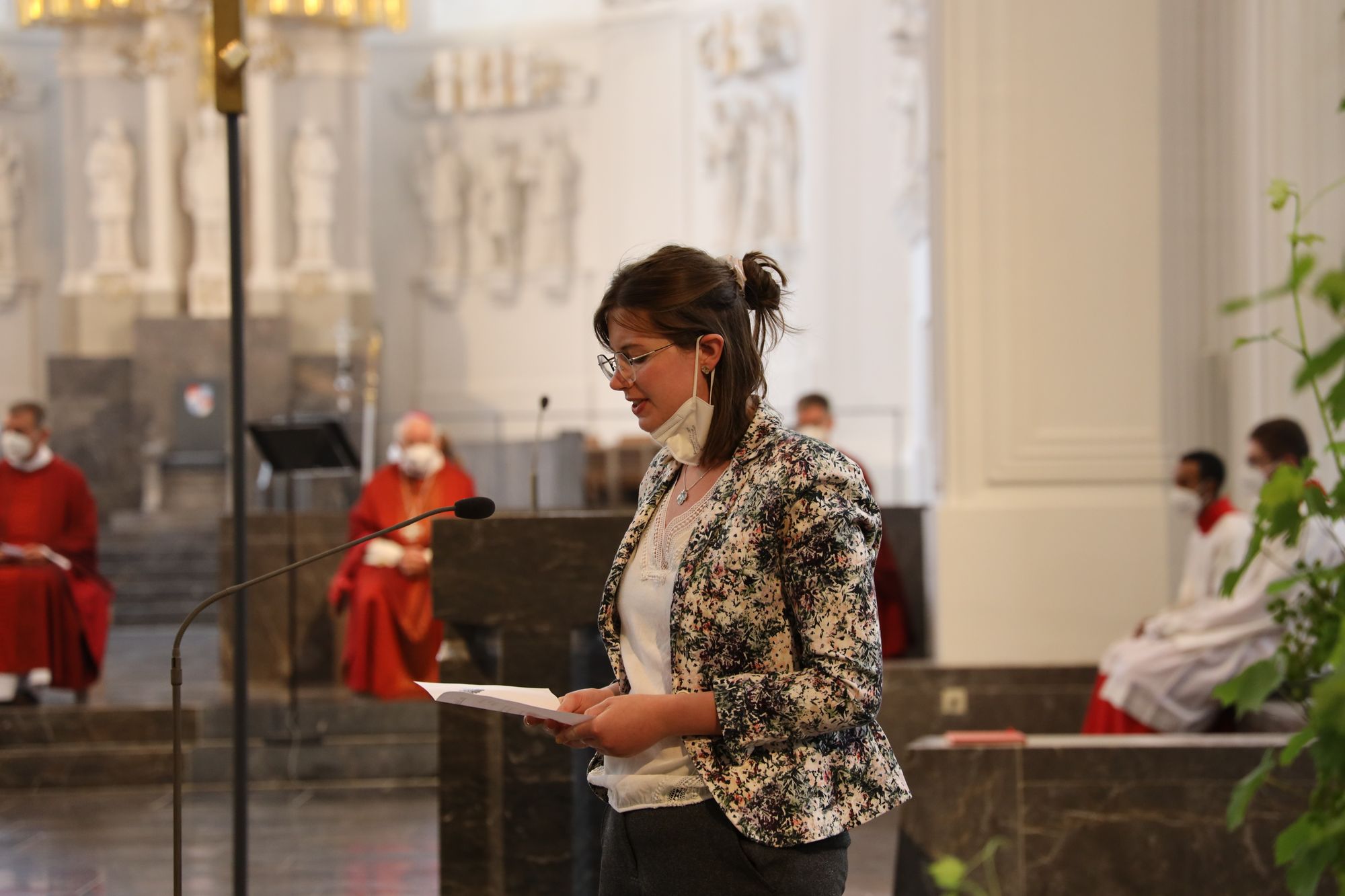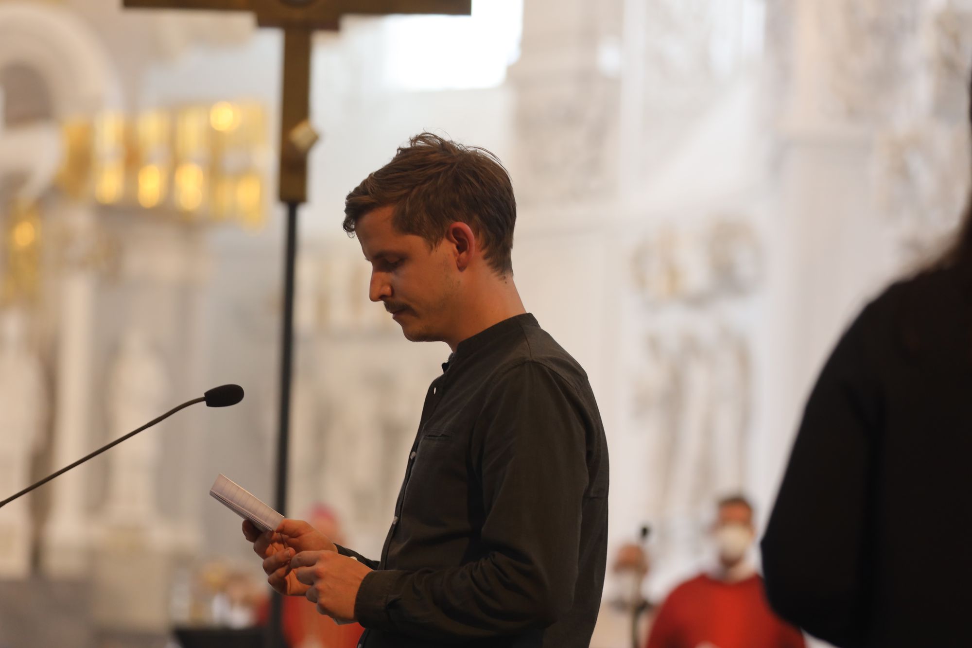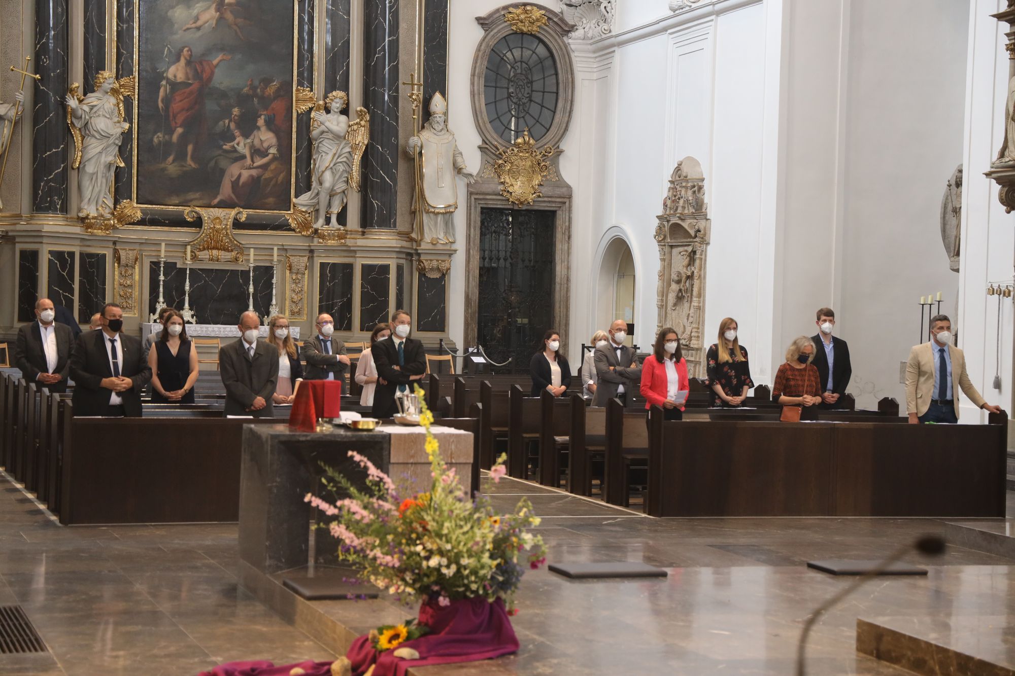Würzburg (POW) 33 Frauen und sieben Männern hat Weihbischof Ulrich Boom im Auftrag von Bischof Dr. Franz Jung am Freitagabend, 9. Juli, beim Kiliani-Tag der Verantwortlichen in Schule und Erziehung die Missio canonica verliehen. Bei einer Eucharistiefeier unter den aktuellen Coronaschutzvorschriften mit rund 120 Gläubigen im Kiliansdom erklärte der Weihbischof, die Frankenapostel Kilian, Kolonat und Totnan seien wie die Menschen in der aktuellen Coronapandemie mit Sorgen und Nöten konfrontiert gewesen. Aber sie hätten ein tiefes Vertrauen gehabt, das sich auf sie selbst, die Gemeinschaft und nicht zuletzt auf Gott gegründet habe. „In Jesus Christus hat Gott uns gezeigt, wie nahe er uns ist in unserem Leben und Sterben, in unseren Unsicherheiten und Ängsten.“ Insofern seien die Frankenapostel Vorbilder und Helfer, „sowohl im Blick auf die globale Krise, verursacht durch den Coronavirus, als auch auf die noch tiefer sitzende Verunsicherung durch den Virus des Misstrauens“. Gemeinsam mit Leitendem Schulamtsdirektor i. K. Jürgen Engel, Leiter der Abteilung Schule und Hochschule, übergab der Weihbischof den neuen Religionslehrern dieses Schuljahres die Beauftragungsurkunden. Pandemiebedingt musste die Begegnung nach dem Gottesdienst entfallen.