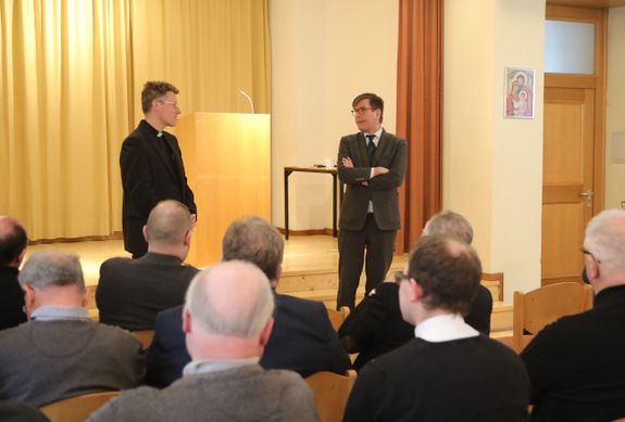 „Wenn sich in der jüngsten Generation empirisch eine größere Offenheit für Religion abzeichnet, was können wir tun?“, eröffnete Leven die Diskussion. Erwachsene Taufbewerber erwarteten von der Kirche „klare Aussagen“, berichteten zwei Priester. Dr. Eugen Daigeler, Vorsitzender des Klerusvereins, ermutigte dazu, sich selbst zu hinterfragen: „Wie verhalten wir uns zu Menschen, die Interesse am Glauben und an unserem Beruf zeigen?“ Ein Priester ergänzte die emotionale Komponente: „Sind wir Menschen, die Glaubensfreude ausstrahlen?“ Mit Blick auf die abnehmenden personellen Ressourcen forderte Leven dazu auf, sich auf das zu besinnen, was nur die Kirche anbieten könne: „Wenn es etwas ist, das nicht nur die Kirche machen kann, dann muss man das nicht machen.“