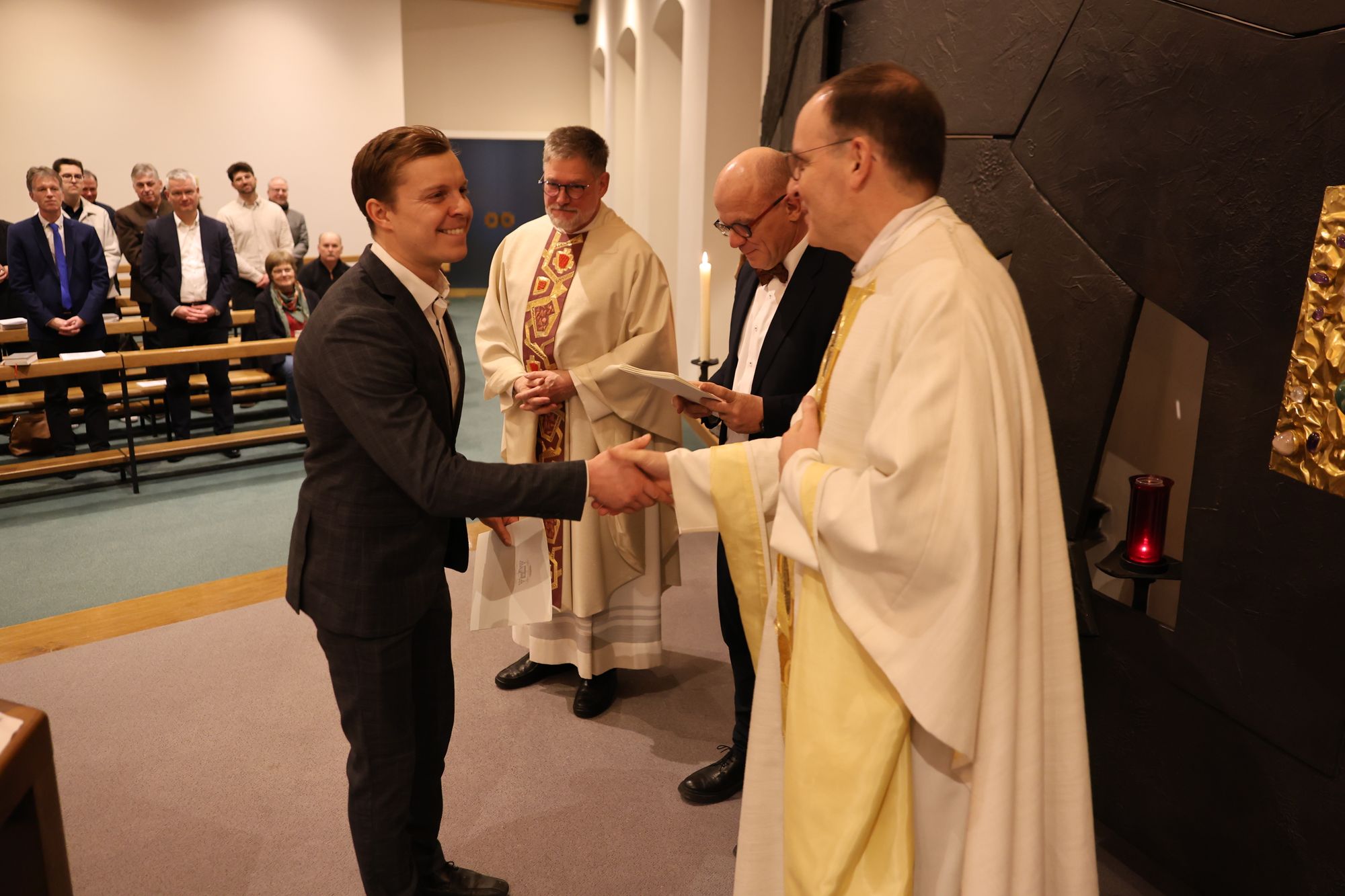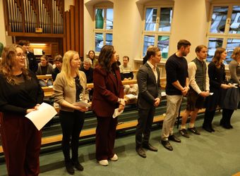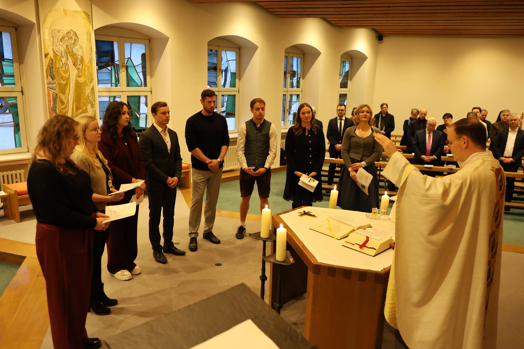 Würzburg (POW) Fünf Frauen und drei Männern hat Weihbischof Paul Reder am Freitagnachmittag, 30. Januar, bei einem Gottesdienst in der Hauskapelle des Würzburger Priesterseminars im Auftrag von Bischof Dr. Franz Jung die Missio canonica für das Lehramt an Gymnasien verliehen. Die kirchliche Erlaubnis, katholischen Religionsunterricht zu erteilen, erhielten die Referendarinnen Corinna Heil, Anna Kopfmüller und Mareike Ziener vom Würzburger Wirsberg-Gymnasium sowie die Referendare beziehungsweise Referendarinnen Chris Brams, Katharina Budjak, Ronja Netsch, Raphael Redolfi und Franz Strauß vom Würzburger Matthias-Grünewald-Gymnasium. Mit der Bevollmächtigung gehe ein sichtbares Zeichen der Aussendung einher: „Die Kirche sendet Sie aus“, sagte Weihbischof Reder. Die Missio sei somit „kein bloßer Verwaltungsakt, sondern Teilhabe an der apostolischen Sendung selbst“.