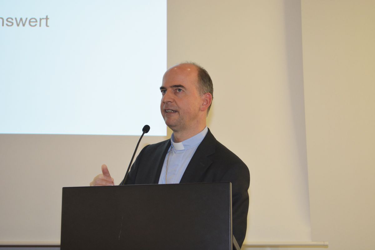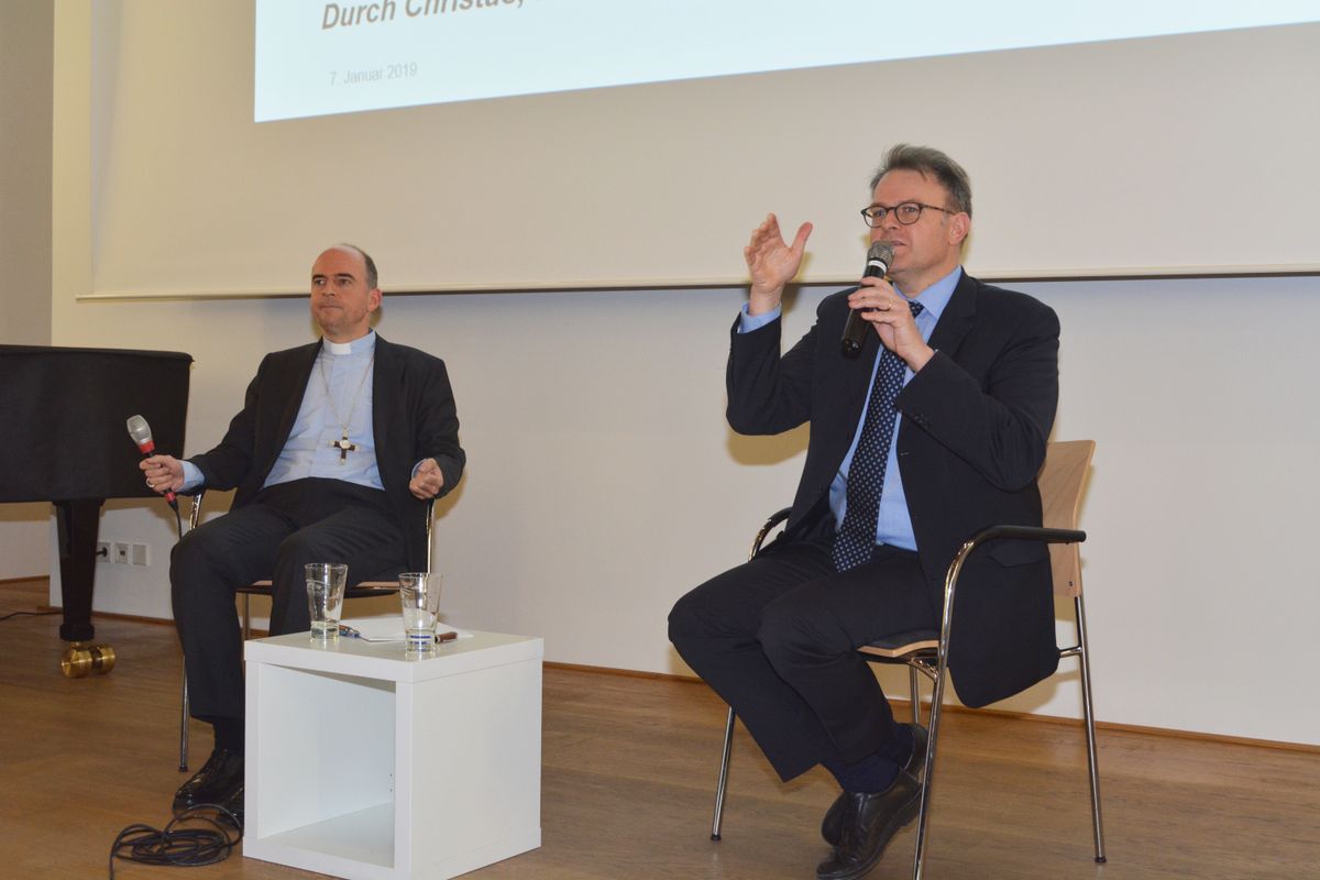 In einem theologisch anspruchsvollen Referat entfaltete der Bischof zunächst vor rund 180 Zuhörern den Begriff der Hoffnung – angelehnt an die Enzyklika „Spe Salvi“ (2007) von Papst Benedikt XVI. (2005 -2013) und das Apostolische Schreiben „Evangelii Gaudium“ (2013) von Papst Franziskus. Letztere Veröffentlichung sei ein „riesiger Traktat der Hoffnung“, urteilte der Bischof. Der Jesuit Franziskus hebe, im ignatianischen Denken geschult, die Dynamik der Hoffnung hervor, welche die Kirche in Bewegung halte.