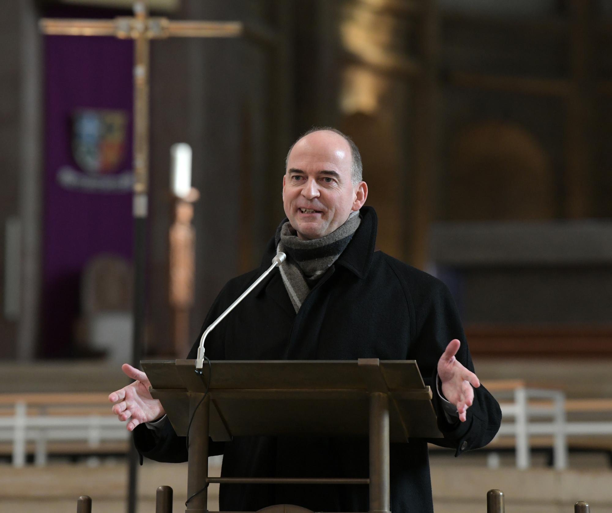 Generalvikar Jung war von der Entscheidung des Papstes sichtlich bewegt. „Ich bin noch dabei, mich an den Gedanken zu gewöhnen, dass ich die Pfalz und mein Heimatbistum Speyer, in dem ich so viele prägende Jahre erlebt habe, schon bald verlassen soll.“ Die Berufung zum neuen Bischof von Würzburg erlebe er als großen Vertrauensbeweis und sehe darin eine hohe Verantwortung, der er sich gerne stelle. Nach der Bekanntgabe im Dom beteten die versammelten Mitarbeiterinnen und Mitarbeiter des Bischöflichen Ordinariats gemeinsam mit Bischof Wiesemann für den scheidenden Generalvikar und sangen, zur Gottesmutter Maria als Patronin des Bistums und des Domes gewandt, das „Salve Regina“.