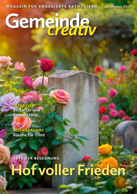 Würzburg (POW) Vielfältige Perspektiven auf den Wandel der Bestattungskultur, Impulse für pastorale Antworten und konkrete Anregungen zur Gestaltung zukunftsfähiger Friedhöfe bietet die Ausgabe Juli-August 2025 der Zeitschrift „Gemeinde creativ“, die am Montag, 28. Juli, erscheint.