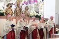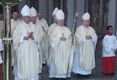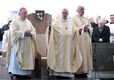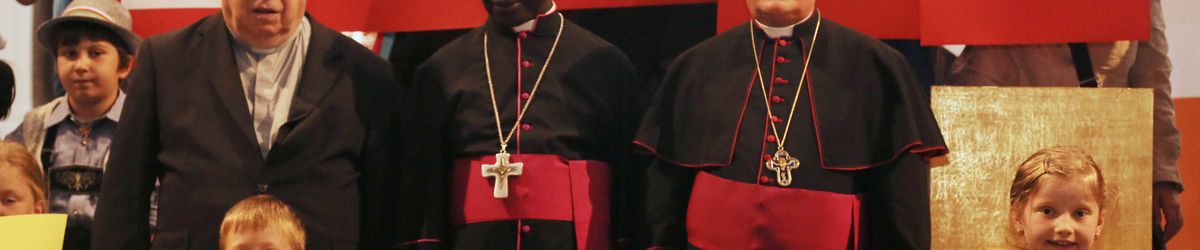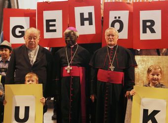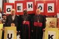 Kiliani-Internationaler Familiensonntag und Feier des 25. Jubiläums der Partnerschaft Würzburg-Mbinga am 13. Juli 2014 in Würzburg: "Kitu kimoja - Wir gehören zusammen" lautet die Botschaft im Kiliansdom. In der Mitte (von links) die Bischöfe Dr. Paul-Werner Scheele, Dr. Emmanuel Mapunda und Dr. Friedhelm Hofmann.