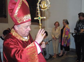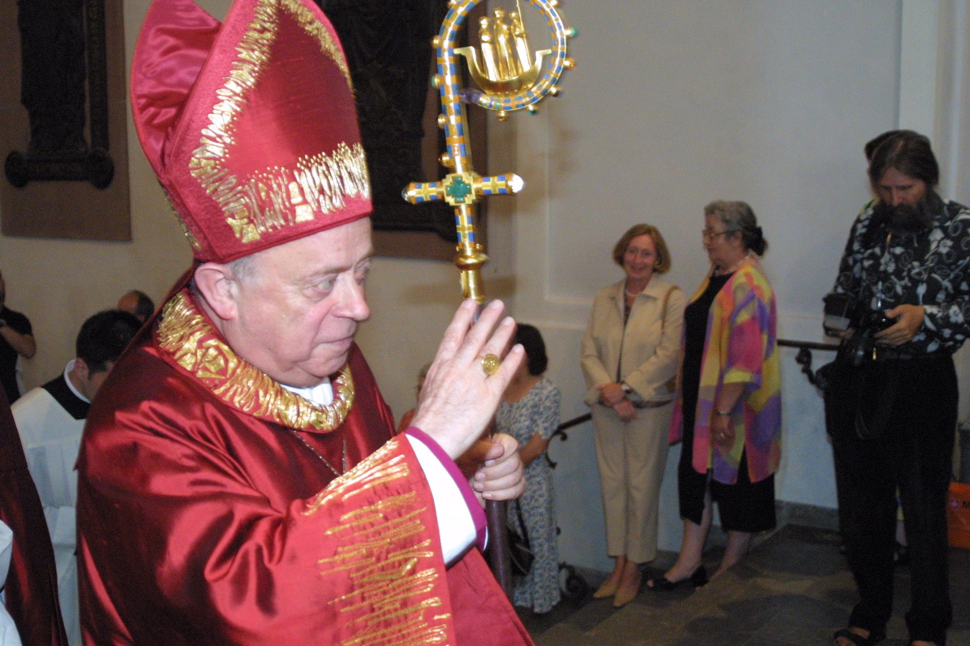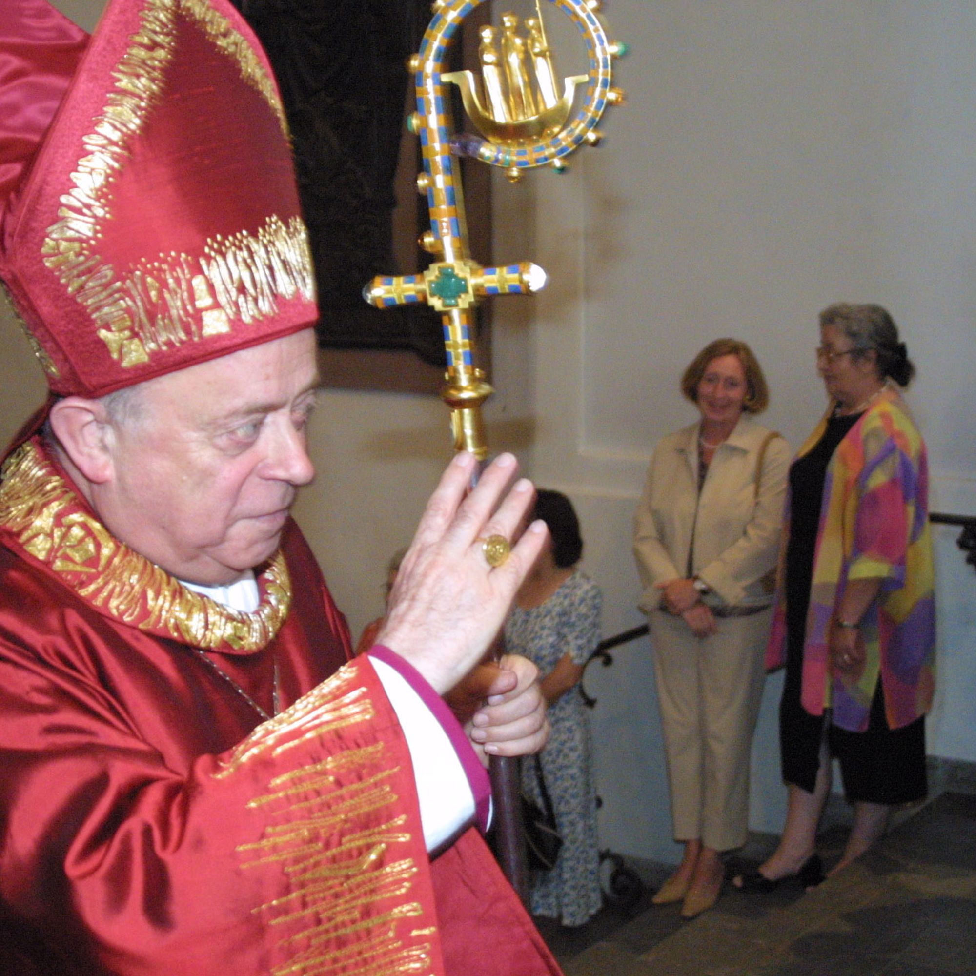 Bischof Dr. Paul-Werner Scheele verabschiedet sich am 13. Juli 2003 mit dem Segen von seinen Diözesanen.