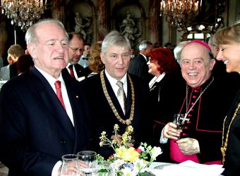 Smalltalk mit dem Bundespräsident Johannes Rau, Univeristätspräsident Prof. Fr. THeodor Berchem und Oberbürgermeisterin Pia Beckmann beim 600. Stiftungsfest der Universität Würzburg.