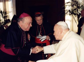 Bischof Paul-Werner Scheele beim Treffen des Vorbereitenden Kommittees für die zweite Dialogphase zwischen den Altorientalischen Kirchen und der Römisch-Katholischen Kirche mit Papst Johannes Paul II..