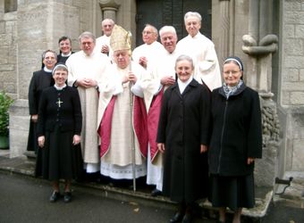 Domdekan em. Prälat Kurt Witzel, bei seiner Einführung als Spiritual der Erlöserschwestern in Würzburg im Oktober 2008 (Mitte von links): Generalvikar Dr. Karl Hillenbrand, Bischof em. Dr. Paul-Werner Scheele und Kurz Witzel.