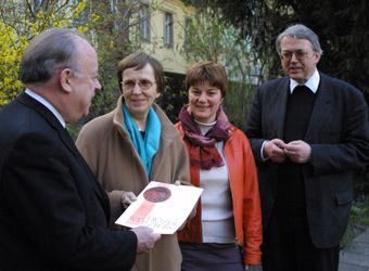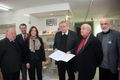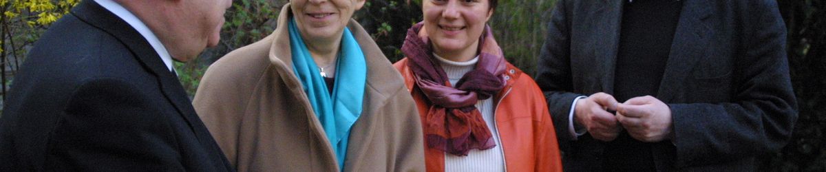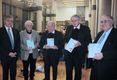 Bischof Dr. Paul-Werner Scheele (links) überreicht Elisabeth Patrzek (zweite von links) vom Katholischen Frauenbund, Anna-Elisabeth Thieser (zweite von rechts) von der Beratungsstelle für Schwangerschaftsfragen des Sozialdienstes katholischer Frauen (SkF) und Generalvikar Dr. Karl Hillenbrand die Urkunden, mit denen die drei für weitere drei Jahre zu Kuratoriumsmitgliedern der Stiftung "Miteinander für das Leben" ernannt werden.