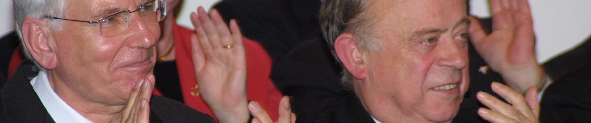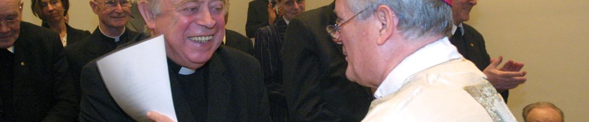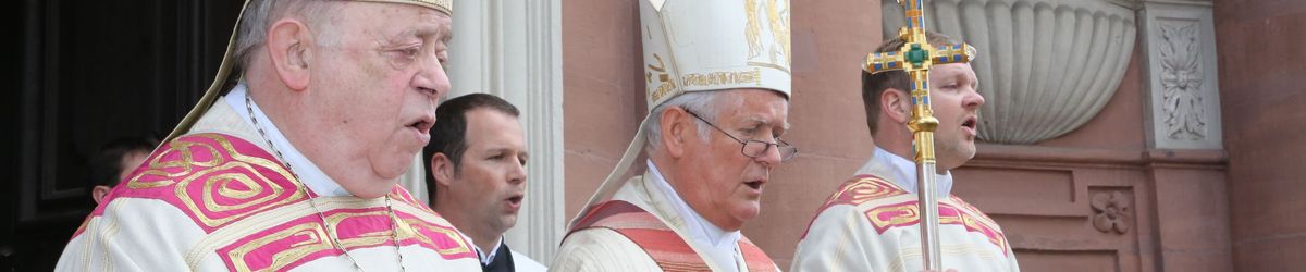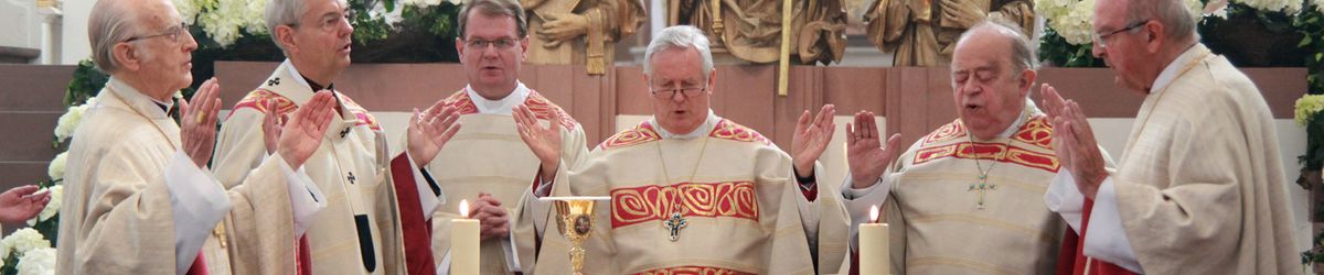 Bischof em. Dr. Anton Schlembach, Bischof von Speyer (1983-2007), Generalvikar des Bistums Würzburg (1981-1983). Beim 25. Bischofsjubiläum (von links): Bischof em. Dr. Paul-Werner Scheele, Bischof em. Dr. Anton Schlembach und Generalvikar Dr. Karl Hillenbrand.