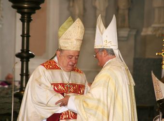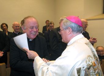 Nach dem Festgottesdienst am 6. April 2008 anlässlich des 80. Geburtstags von Bischof em. Dr. Paul-Werner Scheele: Münchens Erzbischof Dr. Reinhard Marx gratuliert Bischof Scheele.
