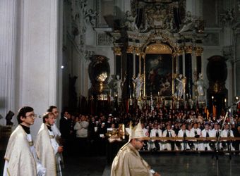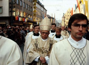 Amtseinführung von Bischof Dr. Paul-Werner Scheele am 21. Oktober 1979 in Würzburg: Zug vom Neumünster zum Kiliansdom.