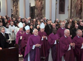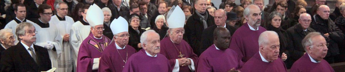 Pontifikalrequiem mit Beisetzung für Domkapitular em. Prälat Wilhelm Heinz († 14. November 2013) am 20. November 2013 im Kiliansdom in Würzburg: Das Requiem zelebrierten neben Bischof Dr. Friedhelm Hofmann auch Bischof em. Dr. Paul-Werner Scheele, Weihbischof Ulrich Boom sowie zahlreiche weitere Priester mit, unter anderem Father Lukas Komba aus dem Partnerbistum Mbinga in Tansania.