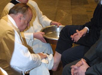 Bei der Messe vom Letzten Abendmahl am Gründonnerstag im Kiliansdom wusch Bischof Dr. Paul-Werner Scheele je sechs Männern aus der Dompfarrei und dem Diözesanrat die Füße.