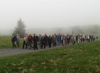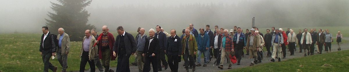 Rund 100 Priester und Diakone aus der Diözese Würzburg pilgerten auf der Priesterwallfahrt 2002 mit Bischof Paul-Werner Scheele vom Würzburger Haus zum Kreuzberg in der Rhön. Die Wallfahrt auf dem Kardinal-Döpfner-Weg stand unter dem Leitspruch des aus Hausen bei Bad Kissingen stammenden früheren Würzburger Bischofs Julius Döpfner, „Wir verkündigen Christus als Gekreuzigten“.