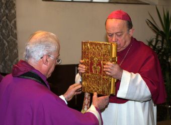 Gottesdienst am 9. April 2012 in der Seminarkirche Sankt Michael in Würzburg. Bischof Dr. Friedhelm Hofmann (links) und Bischof em. Dr. Paul-Werner Scheele.