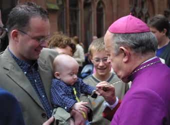 Im Anschluss an die Eucharistiefeier zur Eröffnung der Kiliani-Wallfahrtswoche am 7. Juli 2002 traf Bischof Paul-Werner Scheele irische Gäste sowie die Kilians und Kilianas im Innenhof des Domkreuzgangs. Jürgen Gottschalk, Vorsitzender der Deutsch-Irischen Gesellschaft Würzburg, stellte dem Bischof zahlreiche Kilians und Kilianas vor. Jüngster im Bunde war der fünf Monate alte Kilian Becker aus Köln, dessen Eltern in Würzburg studiert hatten. Alternativ: Die Jüngsten nicht vergessen: Bischof em. Paul-Werner zeigt dem kleinen Kilian sein Bischofskreuz.