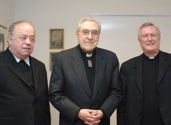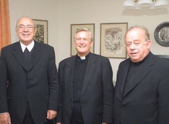 Jean-Marie Kardinal Lustiger (Mitte) (17.09.1936-05.08.2007), Erzbischof von Paris, mit Bischof em. Dr. Paul-Werner Scheele (links) und Bischof Dr. Friedhelm Hofmann (rechts) am 10. April 2006 beim „Oasentag“ der Priester, Diakone und Priesteramtskandidaten.