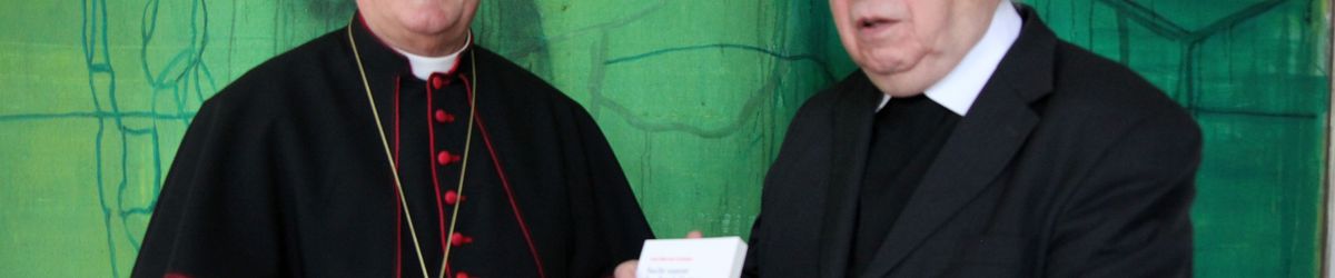 Bischof Dr. Friedhelm Hofmann (links) würdigt seinen Vorgänger Bischof em. Dr. Paul-Werner Scheele bei der Feier zum 60. Priesterjubiläum am Ostermontag, 9. April 2012, mit herzlichen Worten.