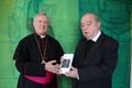 Bischof em. Dr. Paul-Werner Scheele (rechts) überreicht Bischof Dr. Friedhelm Hofmann das erste Exemplar seines neuen Buchs "Sucht zuerst das Reich Gottes - Hilfen bei der Suche".