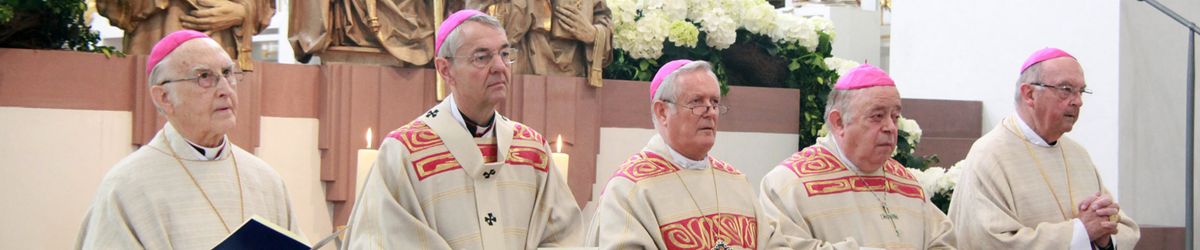Dankgottesdienst zum 70. Geburtstag von Bischof Dr. Friedhelm Hofmann am 12. Mai 2012 im Neumünster in Würzburg (von links): Erzbischof em. Dr. Karl Braun, Erzbischof Dr. Ludwig Schick, Bischof Dr. Friedhelm Hofmann Hofmann, Bischof em. Dr. Paul-Werner Scheele und Bischof Wilhelm Schraml.