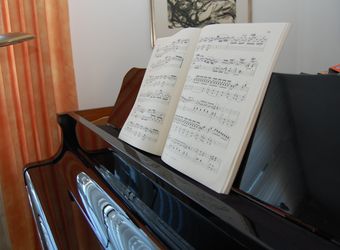 Interviewbesuch (hier: das Klavier im Wohnzimmer der Wohnung über dem Diözesanarchiv) bei Bischof em. Paul-Werner Scheele kurz vor seinem 90. Geburtstag.