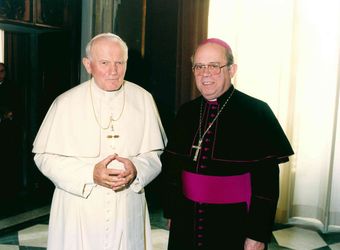 Papst Johannes Paul II. und Bischof Paul-Werner Scheele beim Ad-limina-Besuch 1992: "Alle Begegnungen mit dem Heiligen Vater haben mich tief beeindruckt."
