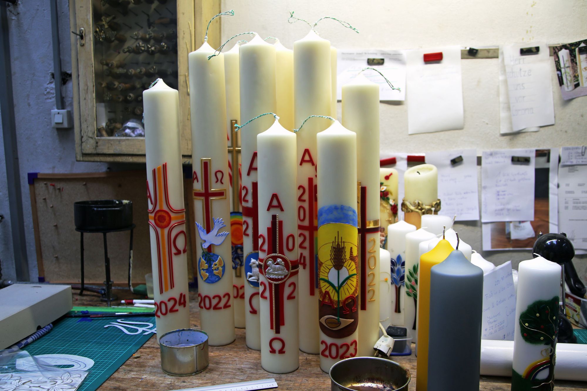 Schenk macht das alles nicht alleine. Insgesamt helfen sieben Mitarbeiterinnen und Mitarbeiter bei der Kerzenherstellung mit, darunter eine Tante und eine Cousine. Die Verzierung der Kerzen übernehmen Schenks Mutter Theresia Schenk und Schwester Michaela Kraft. Beide sind ausgebildete Wachsbildnerinnen. Zurzeit arbeiten sie mit großer Konzentration an Osterkerzen. „Weihnachtsstimmung kommt während der Arbeit nicht auf, denn die Weihnachtskerzen werden schon im September angefertigt“, erzählt Michaela Kraft. Generell sei Schenk die familiäre Atmosphäre in der Firma eine Herzensangelegenheit. „Wir sind auch Ausbildungsbetrieb, aber wir brauchen jemanden, der zu uns passt“, ergänzt er.