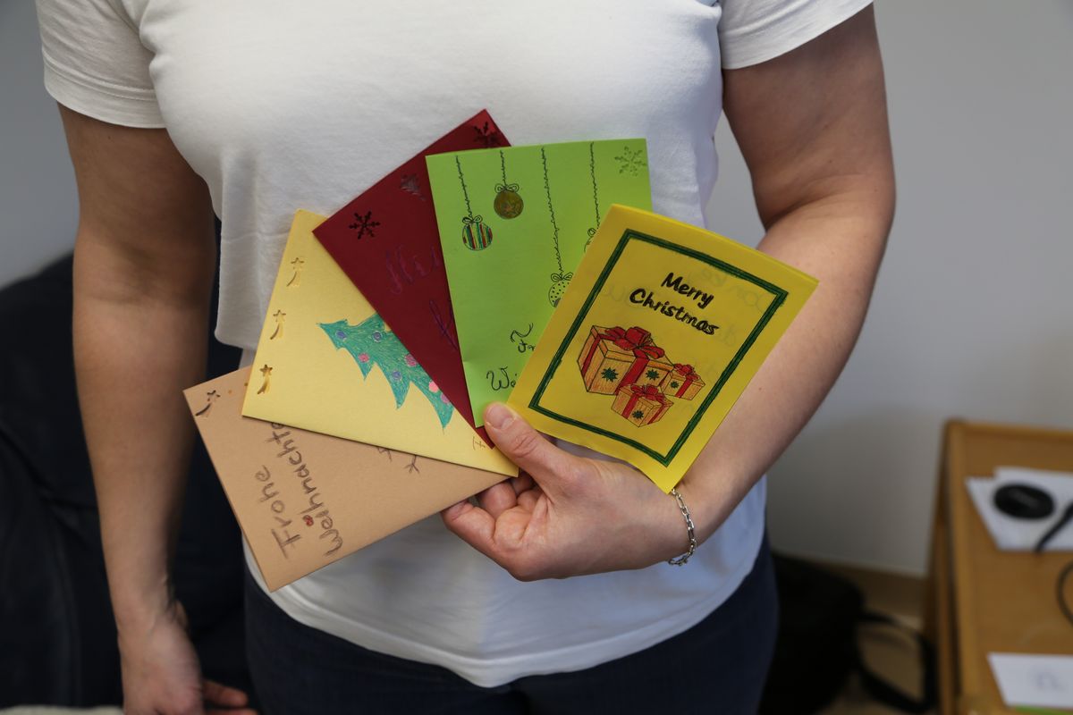 Schäfer: Ich biete verschiedene Bastelaktionen an, bei denen die Gefangenen selbst Weihnachtskarten basteln können. Entweder als Geschenk für Ehrenamtliche, die sie besuchen, oder für ihre Familien. Gerade für die Kinder ist es schöner, wenn sie eine gebastelte Weihnachtskarte von ihrer Mama bekommen, als eine gekaufte. Neben der Dekoration der Station gibt es auch einen Adventskalender. Die Tütchen sind mit Sprüchen, Rätseln oder Geschichten gefüllt. Bei der Weihnachtsfeier an Heiligabend kommen Ehrenamtliche, die gemeinsam mit den Frauen feiern. Dann wünschen wir uns frohe Weihnachten in den unterschiedlichen Sprachen, die anwesend sind. Aber es fließen jedes Jahr auch Tränen beim Fest. Manche nehmen sich gegenseitig in den Arm und trösten sich.
