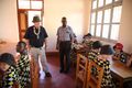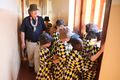 Die Kinder führen die Besucher aus Deutschland auch durch ihre Räume. Die Bettüberwürfe im Schlafraum der Mädchen sind rot mit bunten Streifen, über den Betten hängen hellblaue Moskitonetze. Trotz der fröhlichen Farben ist die Enge spürbar. Zwischen den Betten ist gerade mal genügend Platz, um durchzulaufen. „Da müsst ihr abends aber ganz leise sein“, sagt Domkapitular Krämer, und die Kinder nicken. Im Speisesaal flitzen alle auf ihre Plätze. Was sie denn am liebsten essen, will Krämer wissen. „Meat and rice!“ – „Fleisch und Reis!“, rufen die Kinder. Aber nur am Wochenende, wirft Kapinga ein: „Sonst wird es zu teuer.“ Unter der Woche stehen Ugali (eine Art Maiskloß), Bohnen und Gemüse auf dem Speiseplan. Auf dem Weg nach draußen passiert die Gruppe einen Raum, in dem sorgsam gefaltete Kleidungsstücke auf dem Boden liegen. Als sie wieder draußen sind, erfahren die Gäste, dass es sich nicht um die Waschküche handelt, sondern dass es noch keine Schränke gibt. Das Geld ist knapp und muss mit Bedacht eingesetzt werden.