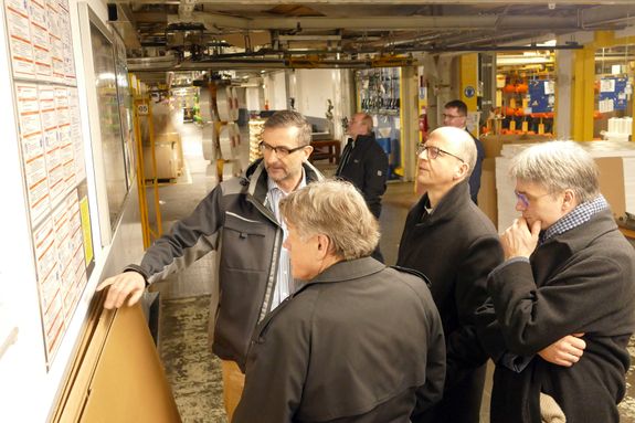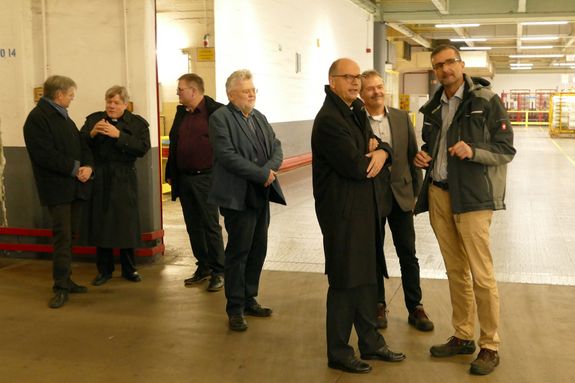 Obernburg (POW) Über den eigenen Tellerrand hinausschauen und mitbekommen, wie die Menschen leben: Mit diesem Ziel hat Bischof Dr. Franz Jung nach eigenem Bekunden am Mittwochvormittag, 19. Februar, das Industrie Center Obernburg (ICO) besichtigt. Ihn begleiteten Diakon Peter Hartlaub, Präses der Katholischen Arbeitnehmer-Bewegung (KAB) im Bistum Würzburg, KAB-Sekretär Joachim Schmitt, Diakon Ludwig Stauner, Betriebsseelsorger für die Region Untermain, Pfarrer Franz Kraft sowie der persönliche Referent des Bischofs, Ordinariatsrat Monsignore Dr. Matthias Türk.