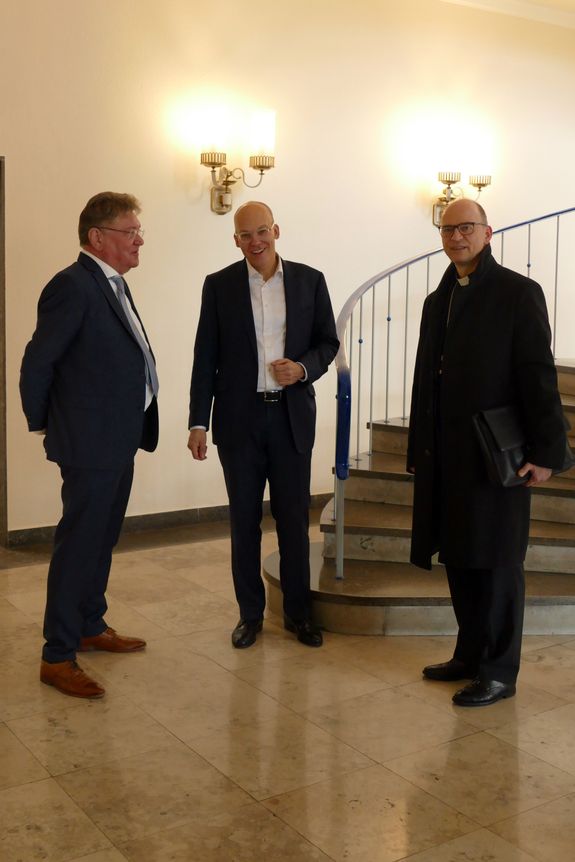 „Ich mache mir viele Sorgen, wie es mit den Industriestandorten in unserem Bistum weitergeht“, sagte Bischof Jung zu den Vertretern des IOC. Er stelle fest, dass die aktuellen Herausforderungen nicht differenziert genug dargestellt werden. So brauche es zum Beispiel bei der Nachhaltigkeit eine ausgewogene Balance zwischen Ökologie und Ökonomie, die er in der momentanen Debatte vermisse. „Das führt auch zu Frust bei den Menschen und die wählen dann entsprechend“, sagte der Würzburger Oberhirte. Er regte an, darüber nachzudenken, ob Kirche nicht den Raum für eine ausgewogene Diskussion bieten könnte.