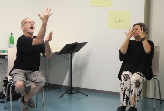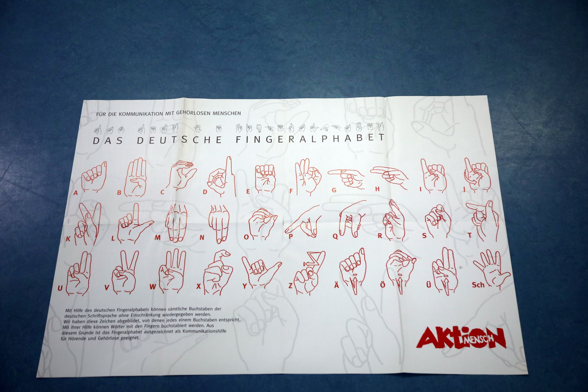 Was die Gruppe noch lernt: Deutsche Gebärdensprache ist erst seit 2002 offiziell als eigene Sprache anerkannt. Es gibt weltweit mehr als 200 Sprachen und auch Dialekte. Die Satzstellung weicht vom Deutschen ab: Subjekt – Objekt – Verb. DGS ist dreidimensional – um Begriffe wie „gestern“ oder „morgen“ zu gebärden, verwendet man eine imaginäre Zeitschiene rechts vom Körper. Man kann nur rund 30 Prozent eines Gesprächs vom Mund absehen – „Mutter“ und „Butter“ etwa sehen genau gleich aus. Es braucht enorme Konzentration, um Handbewegungen und Gesicht gleichzeitig im Auge zu behalten, vor allem, wenn alle gleichzeitig gebärden. „Der Alltag ist sehr anstrengend“, sagt Walter. Oswald Friedrich zeigt, wie man den Redefluss stoppen kann: Er legt beide Zeigefinger waagrecht aneinander und lässt den rechten abrupt herunterfallen. „Das bedeutet: Ich habe den Faden verloren.“