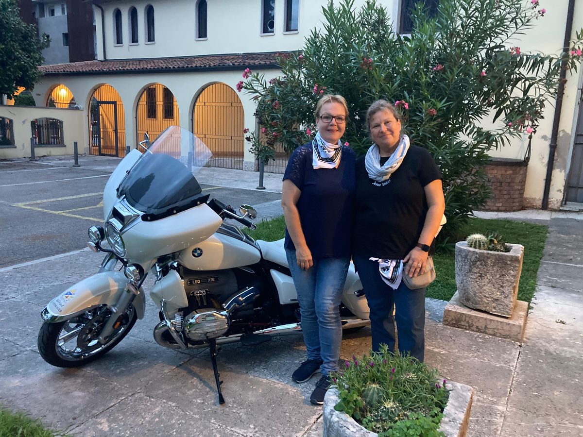 Gemeinsam mit etwa 35 Unterstützern hatten die „Jesus-Biker“ in Altötting und Verona Halt gemacht, Gottesdienste gefeiert und auch neue Unterstützer und Mitglieder aufgenommen. „Das war für mich auch nochmal ein sehr bewegender Moment“, sagt Dempewolf, der sich als Novizenmeister um die Mitgliedsanwärter kümmert. Gemeindereferentin Andrea Buhler-Schmidt aus dem Pastoralen Raum Aschaffenburg beschreibt die Fahrt als bewegende und „spannende, doch sehr ungewöhnliche Reise“. Sie fuhr gemeinsam mit der Religionslehrerin im Kirchendienst Simone Dempewolf im Auto hinterher. So sorgten sie für die Sicherheit der Biker im italienischen Straßenverkehr. „Ich freue mich immer noch, dass ich dabei sein durfte“, sagt Buhler-Schmidt.