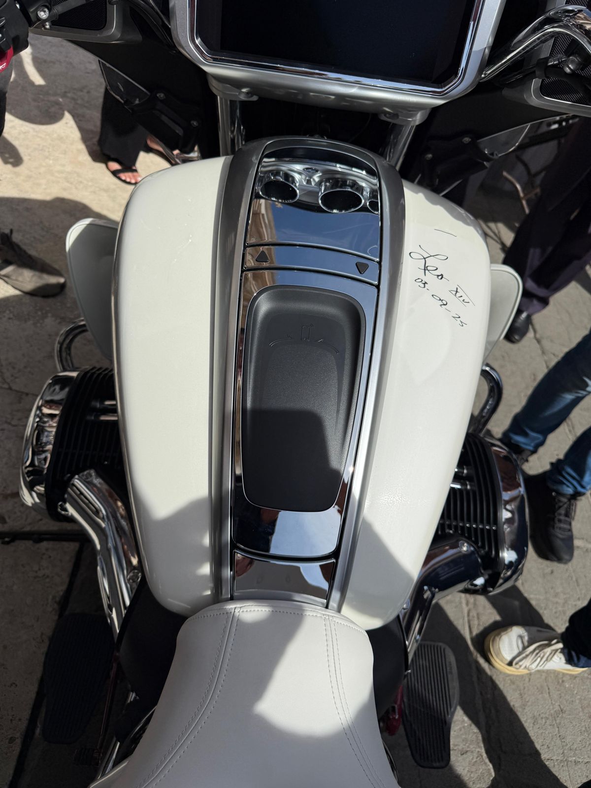 Auf der Fahrt hatten die „Jesus-Biker“ und Begleiter auf einen Moment hingefiebert: die Generalaudienz mit dem Papst, bei der sie das weiße Motorrad überreichen wollen. Die BMW R 18 Transcontinental war in den vergangenen Wochen beim Motorradhändler Witzel in Schweinfurt zum Papstbike umgebaut worden. In Vatikanweiß, mit Papstwappen und einer Friedensaufschrift in mehr als 20 verschiedenen Sprachen. Ein kleines Papamobil.