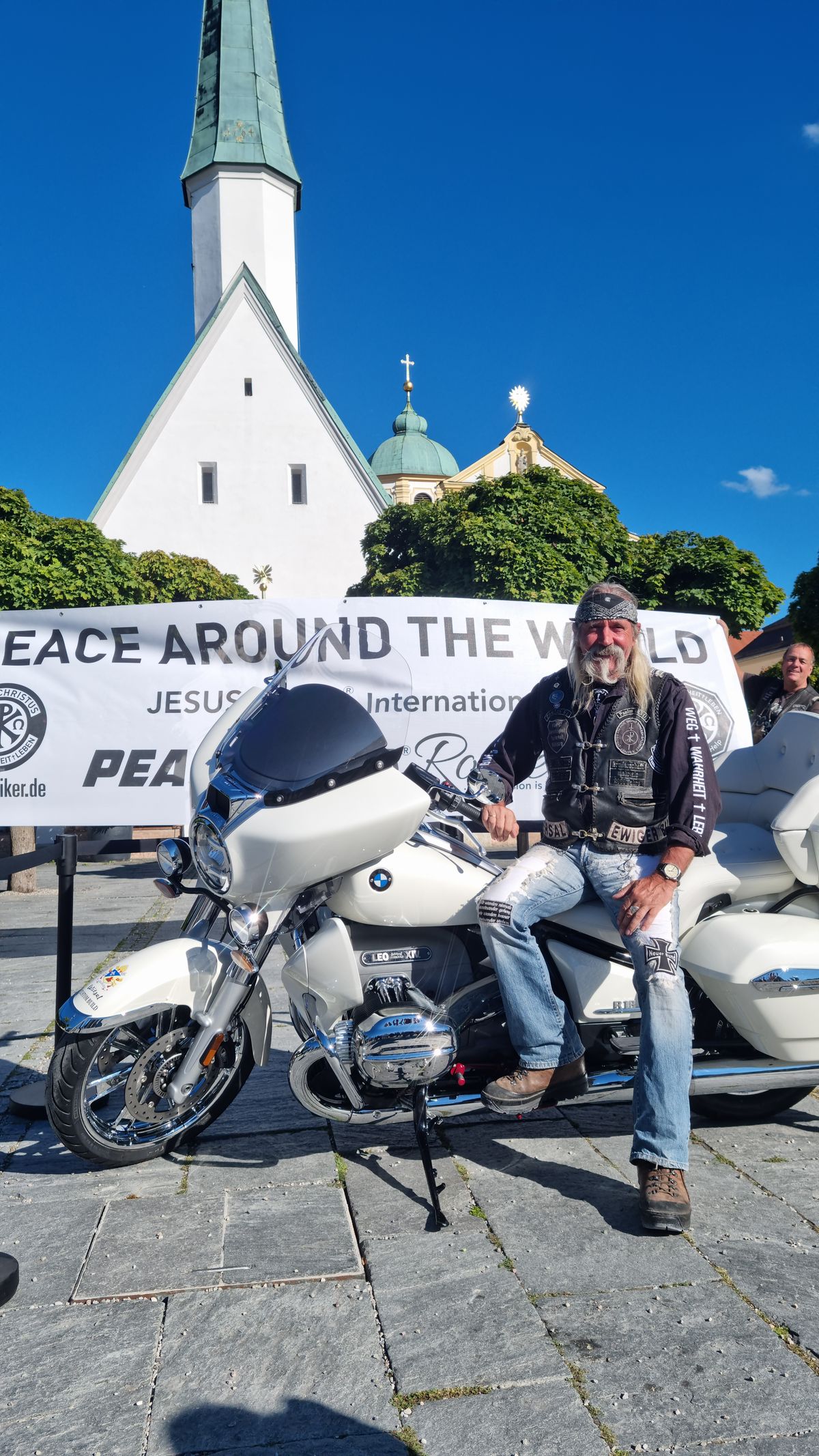 Schaafheim/Altötting/Verona/Rom (POW) Ein weißes Motorrad und 25 schwarze Lederkutten sind am Mittwoch, 3. September, auf den Stufen des Petersplatzes in Rom zu sehen. Thomas Draxler und seine Kollegen der christlichen Motorradgruppe „Jesus-Biker“ warten auf den Stufen auf Papst Leo XIV. – mit einer besonderen Mission und dem weißen BMW-Motorrad im Gepäck.