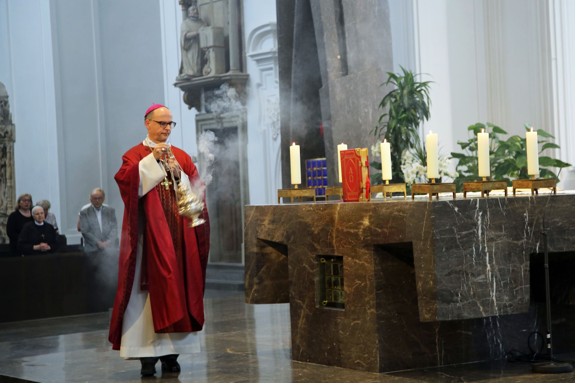 Dazu müsse man auch über verschiedene Ansichten sprechen können und dann gemeinsam im Dialog zu einer Lösung finden. Nicht einfach „versöhnte Verschiedenheit, nebeneinander her, dann ist alles gut, sondern im echten Ringen um Gemeinschaft“. Der Dialog sei auch Bischof Scheeles Mittel der Wahl gewesen. „Echter Dialog, das war ihm auch klar, das ist nicht nur ein Lehrdialog, sondern ein Dialog unter Menschen, und es braucht das vertrauensvolle Miteinander, die Begegnung auf Augenhöhe, den Anderen ernst zu nehmen und zu erwarten, dass Gott auch im Anderen etwas sagt für mich, wenn ich bereit bin, auf ihn zu hören.“