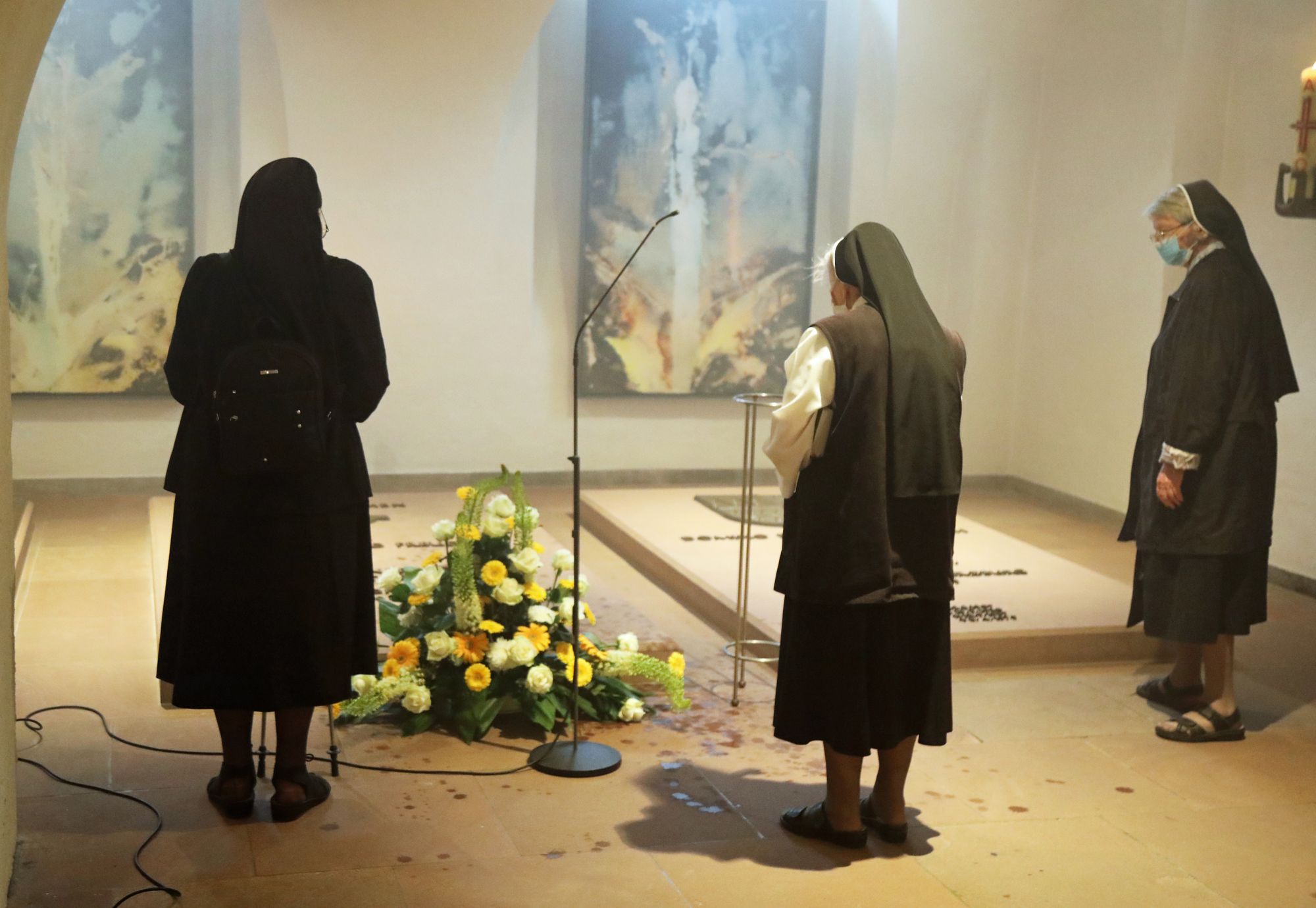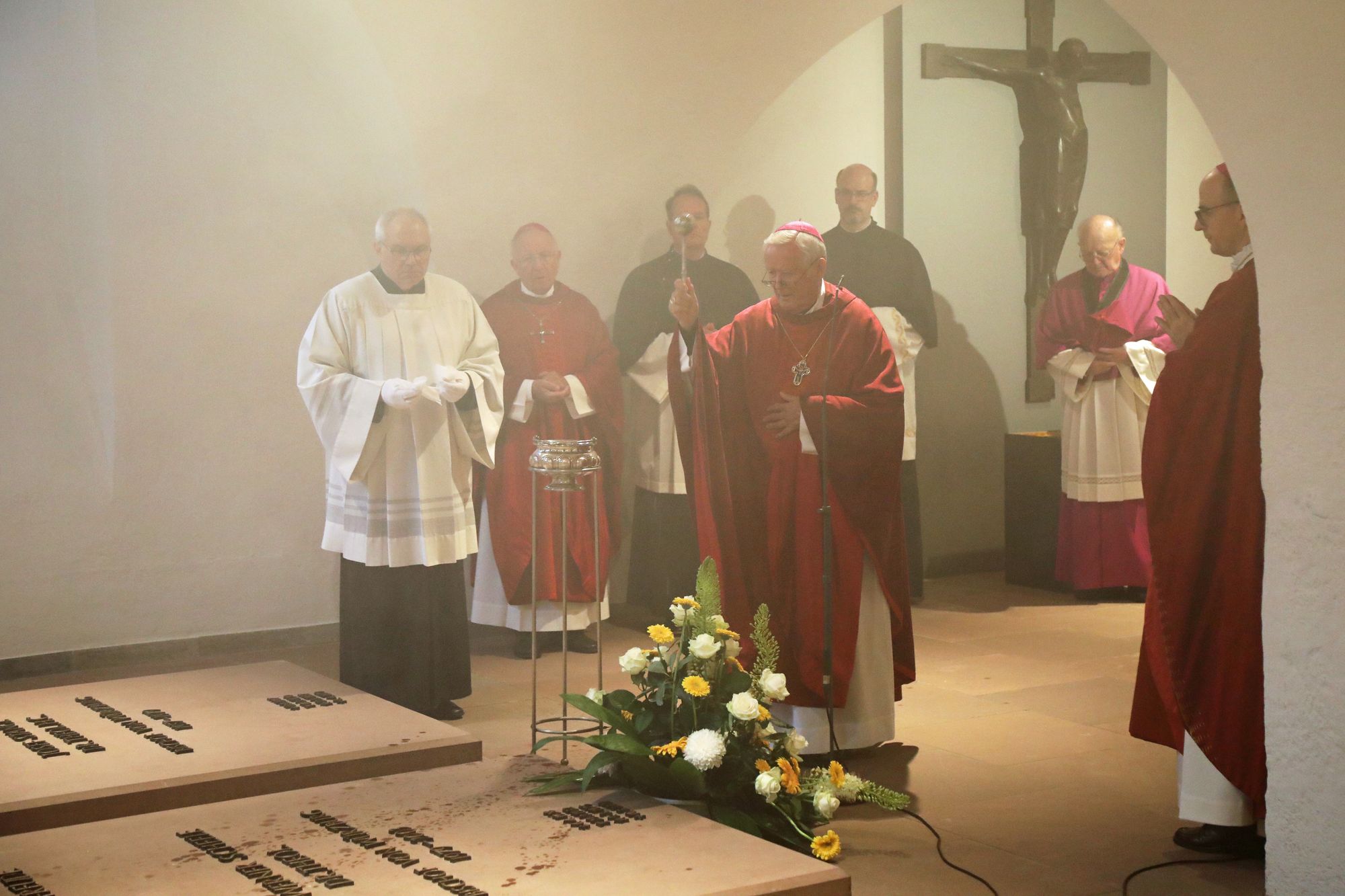 Bei der abschließenden Statio in der Krypta des Kiliansdoms sprach Bischof Jung den Segen über das Grab Bischof Scheeles.