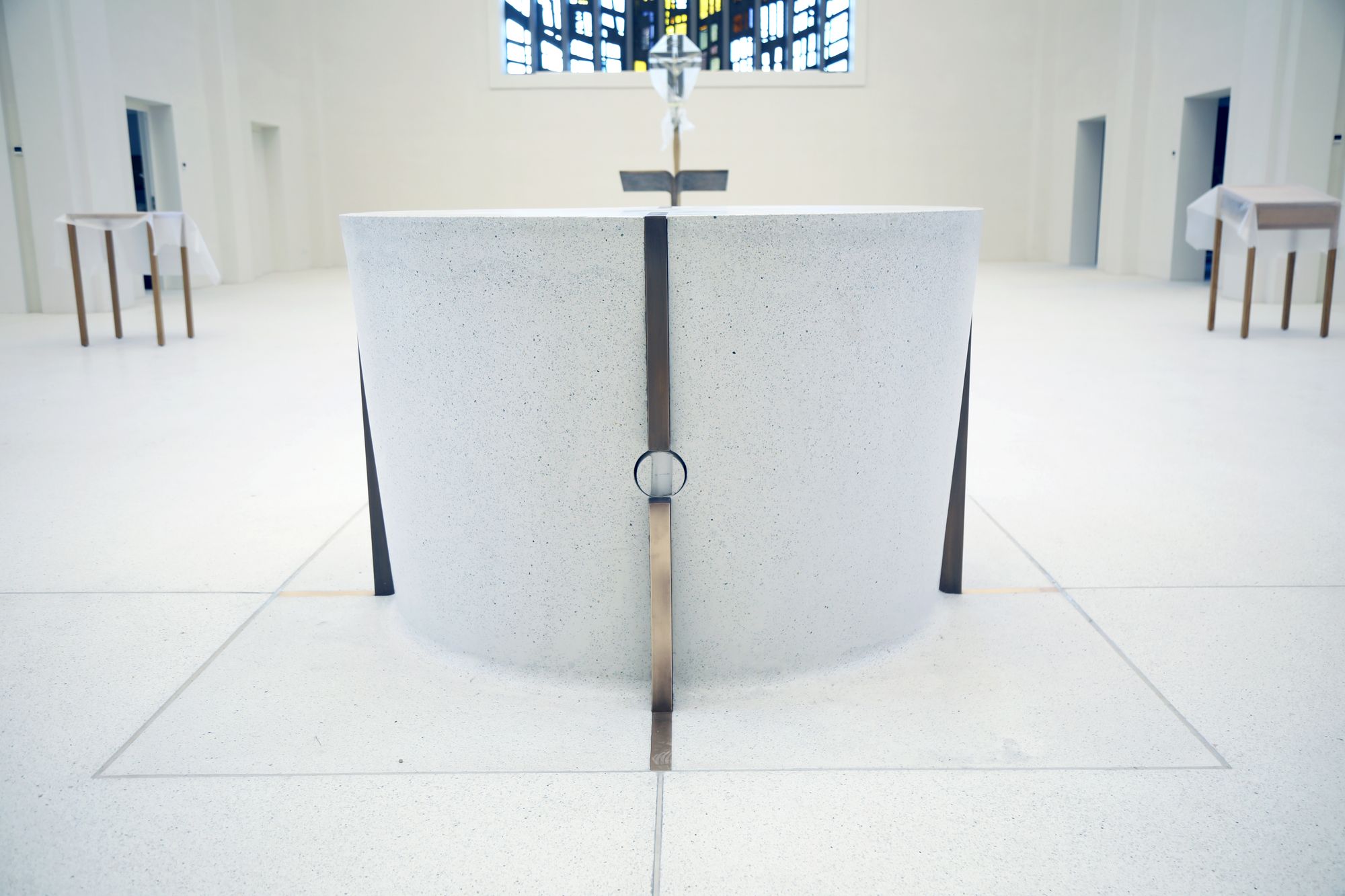 Eine „Feuerprobe“ hat der Altar bereits hinter sich gebracht. Denn zum Ritus der Altarweihe gehört es, an fünf Stellen Weihrauch auf dem Altar zu verbrennen. Dies soll an die fünf Wundmale Jesu erinnern. „Aber hält das Material das aus? Es wäre gefährlich, wenn sich der Stein durch die Hitze auflöst oder abplatzt“, erklärt Werb. Zudem hinterlasse das Abbrennen von Weihrauch sichtbare Brandspuren. Man habe aber auch keine Schalen für das Feuer verwenden wollen, wie es manche anderen Bistümer in dieser Situation getan hätten. „Wir haben deshalb eine Probe gemacht.“