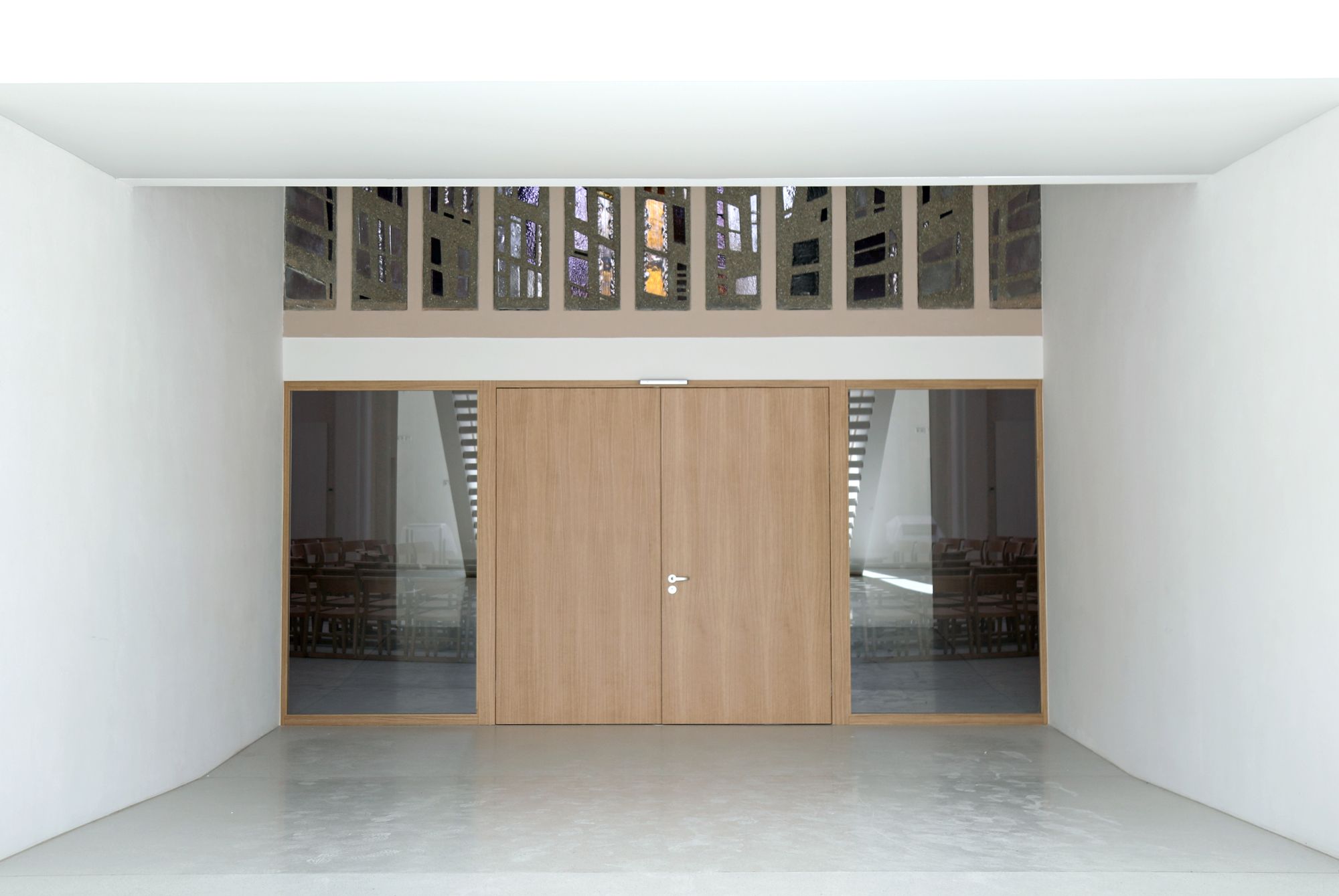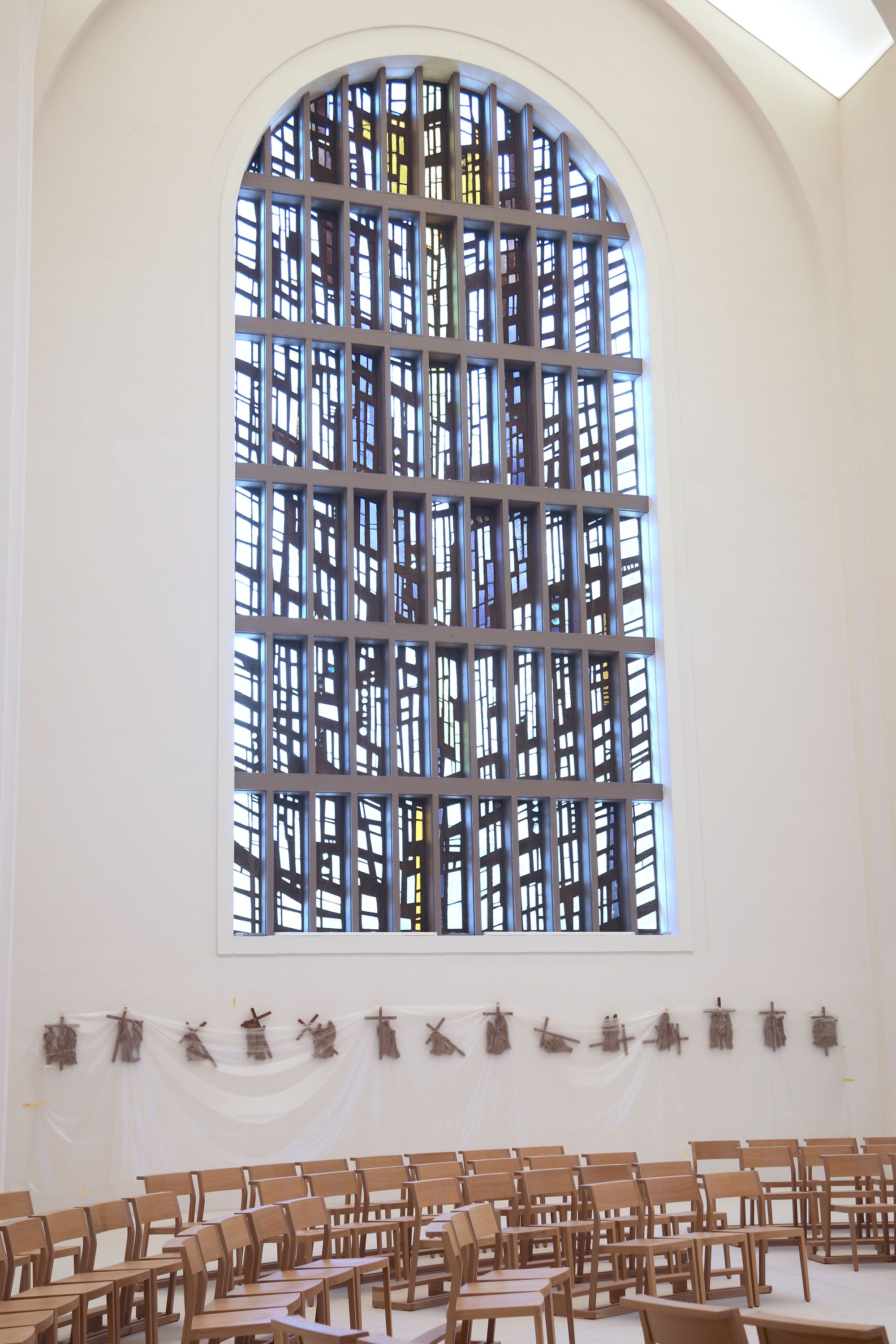 Obwohl die Kirche stark verkleinert wurde, wirkt sie luftiger als früher. Das liegt nicht nur an der schlichten Einrichtung und den hellen Farben, sondern auch an einem raffinierten Lichtkonzept. Eine Lichtkuppel, kombiniert mit einigen Scheinwerfern, taucht den Raum in ein sanftes, indirektes Licht. „Wir können damit verschiedene Lichtsituationen erzeugen“, erklärt Werb. Auch im übrigen Haus wurden solche Lichtdecken verwendet, ergänzt Karl-Heinz Seibold. Auch die vier großen Rundbogenfenster des Schweinfurter Künstlers Gustl Kirchner, von denen eines in einer ebenso spektakulären wie geheimen Aktion im Herbst 2018 verschoben wurde, tragen zur Atmosphäre des Kirchenraums bei.