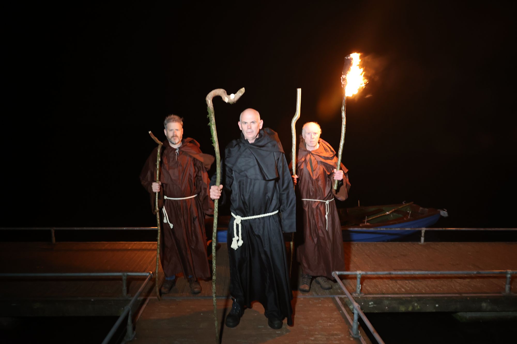 Mullagh (POW) Im flackernden Schein einer Fackel zieht ein Ruderboot seine Bahn über den dunklen See von Mullagh, dem Geburtsort des heiligen Kilian. Darin sind drei Männer in dunklen Mönchsgewändern. Eilig legen sie am Ufer an. Der Mönch mit dem schlichten Bischofsstab sinkt auf die Knie, greift beherzt in das sattgrüne Gras und ruft beglückt in die Nacht: „Endlich daheim!“