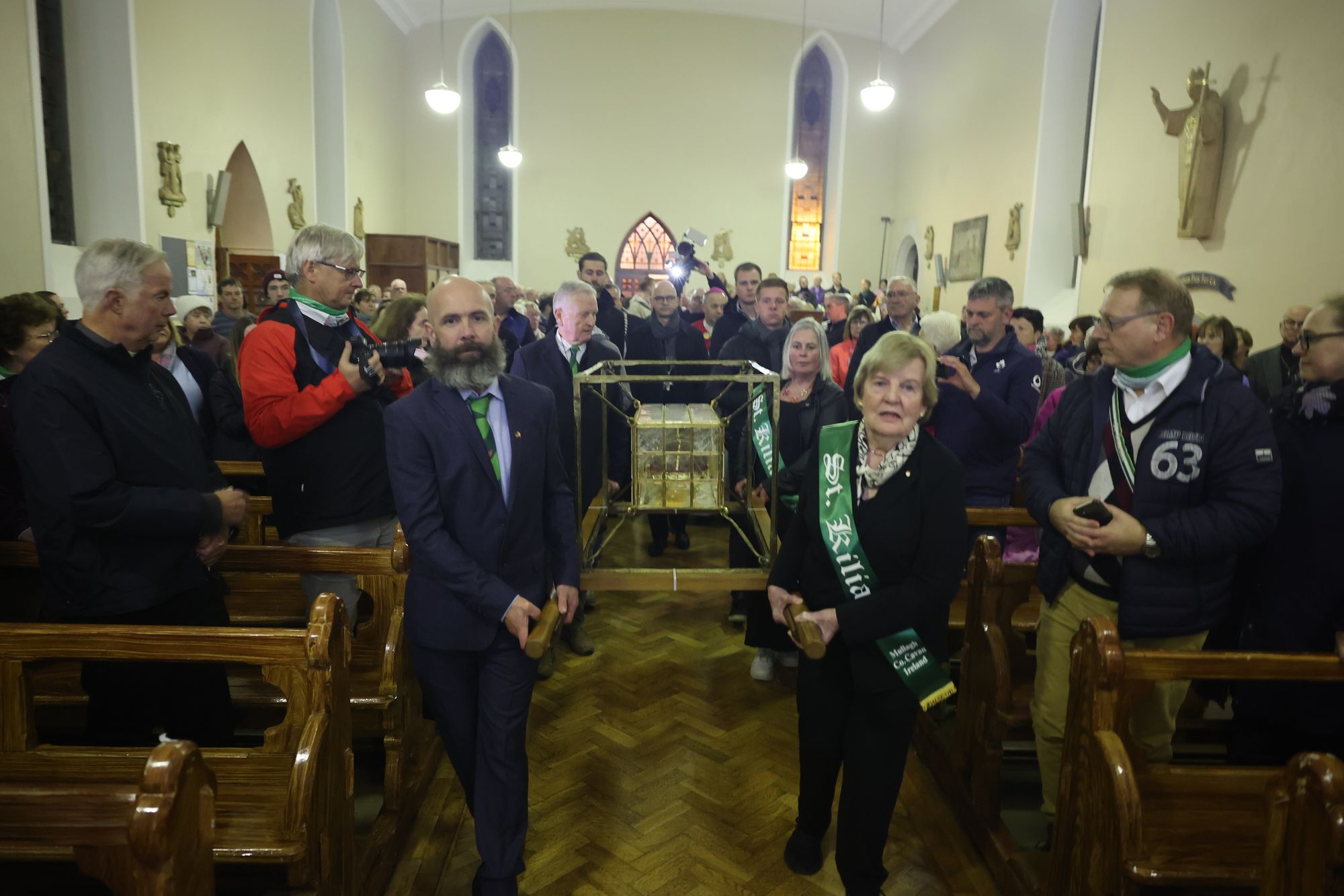 Während die Pilgergruppe aus Deutschland mit Bussen ins Hotel zurückkehrt, halten in der Kilianskirche von Mullagh die ganze Nacht hindurch bis zur Morgenmesse um sieben Uhr im Wechsel Gruppen aus dem Ort und den umliegenden Pfarreien im Gebet Wache beim Reliquienschrein. Es sei kein Problem gewesen, dafür Leute zu finden, berichtet der Pfarrer: Der lang ersehnte Besucher Kilian samt Gefährten ist endlich daheim.