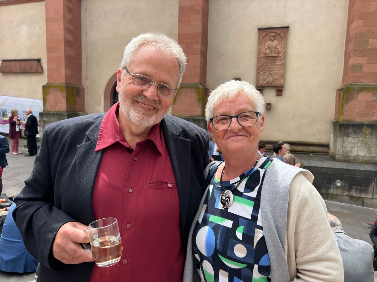 Auf 25 Ehejahre blicken Arnt (53) und Daniela (51) Schmitt aus Sommerach (Dekanat Kitzingen). „Eigentlich sind wir sogar 35 Jahre zusammen, die ersten zehn Jahre haben wir halt dafür geübt“, sagten sie augenzwinkernd. Wichtig sei es, dass man aus der Ehe etwas Vernünftiges mache und zusammehalte. „Kommunikation ist das A und O.“