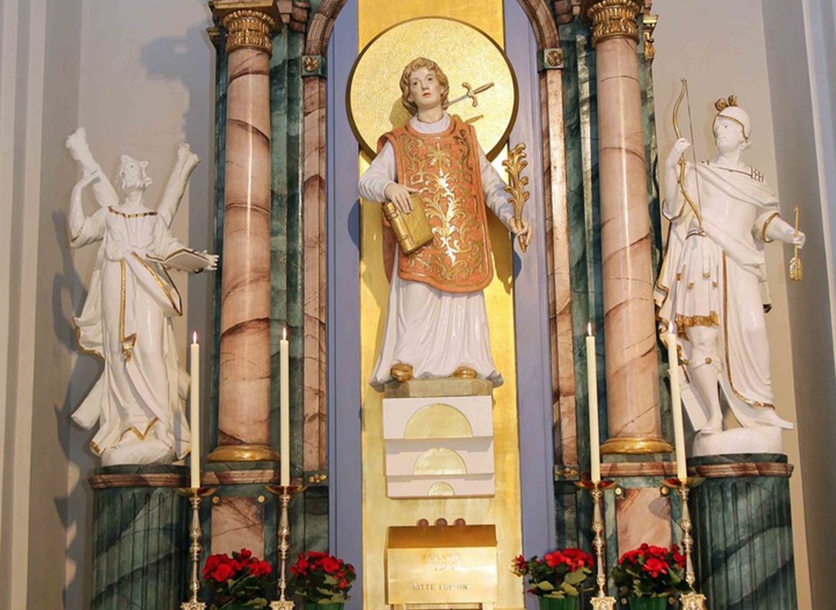 Die Schola Petrina gestaltet den Gottesdienst musikalisch. Bereits ab 12 Uhr besteht die Möglichkeit zum stillen Gebet vor dem Reliquienschrein. Aquilin, um 970 in Würzburg geboren, wirkte als Kanoniker in Mailand und wurde dort wohl im Jahr 1017 als Glaubenszeuge ermordet.