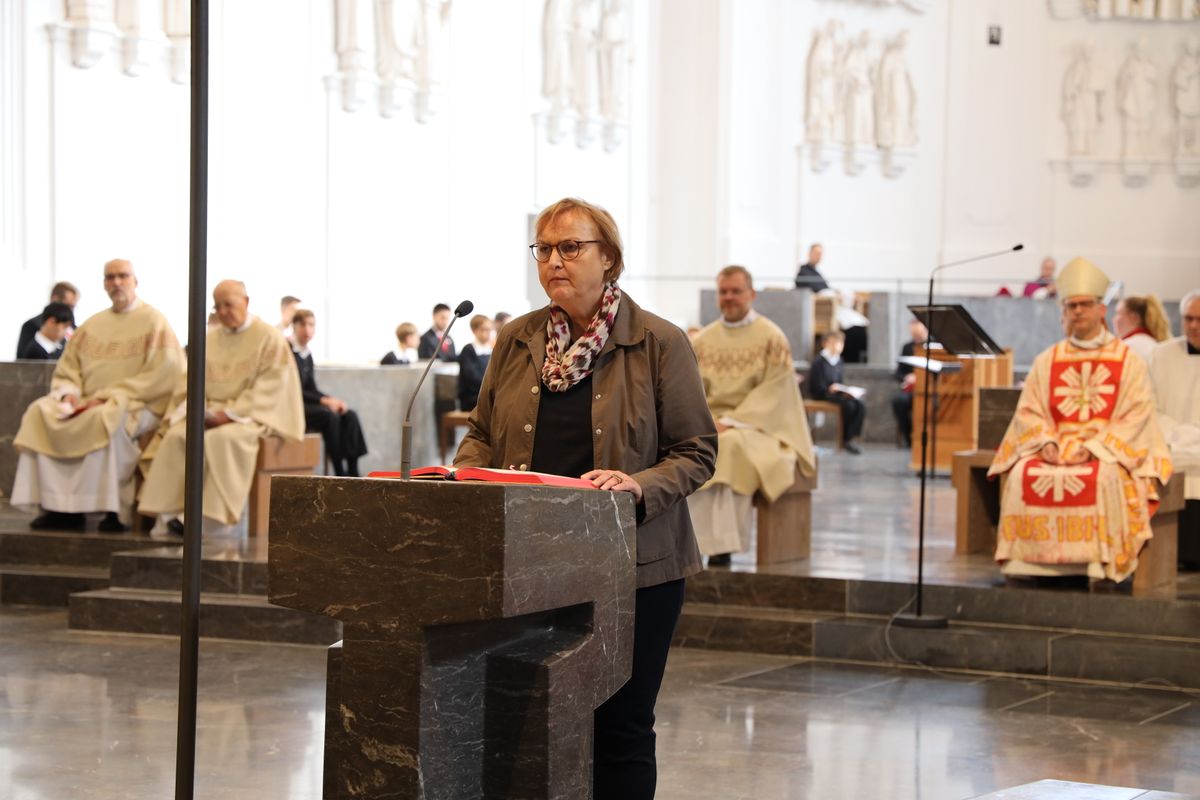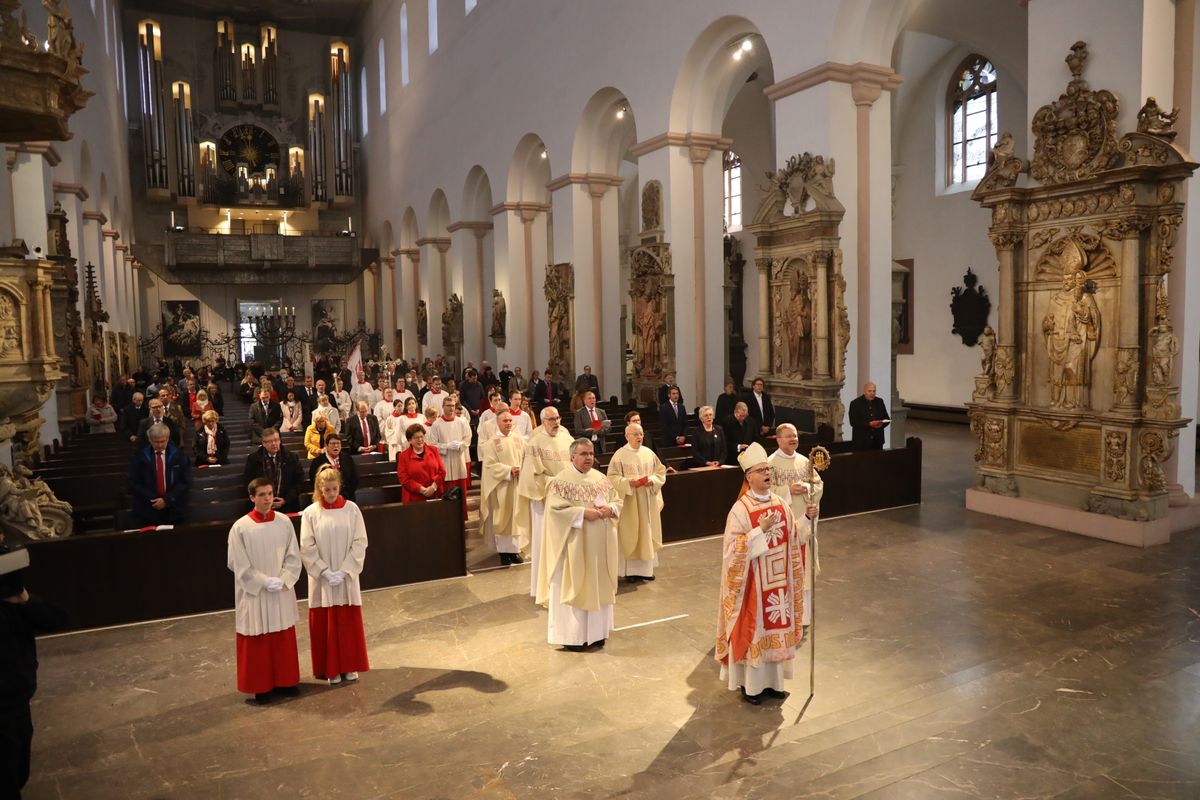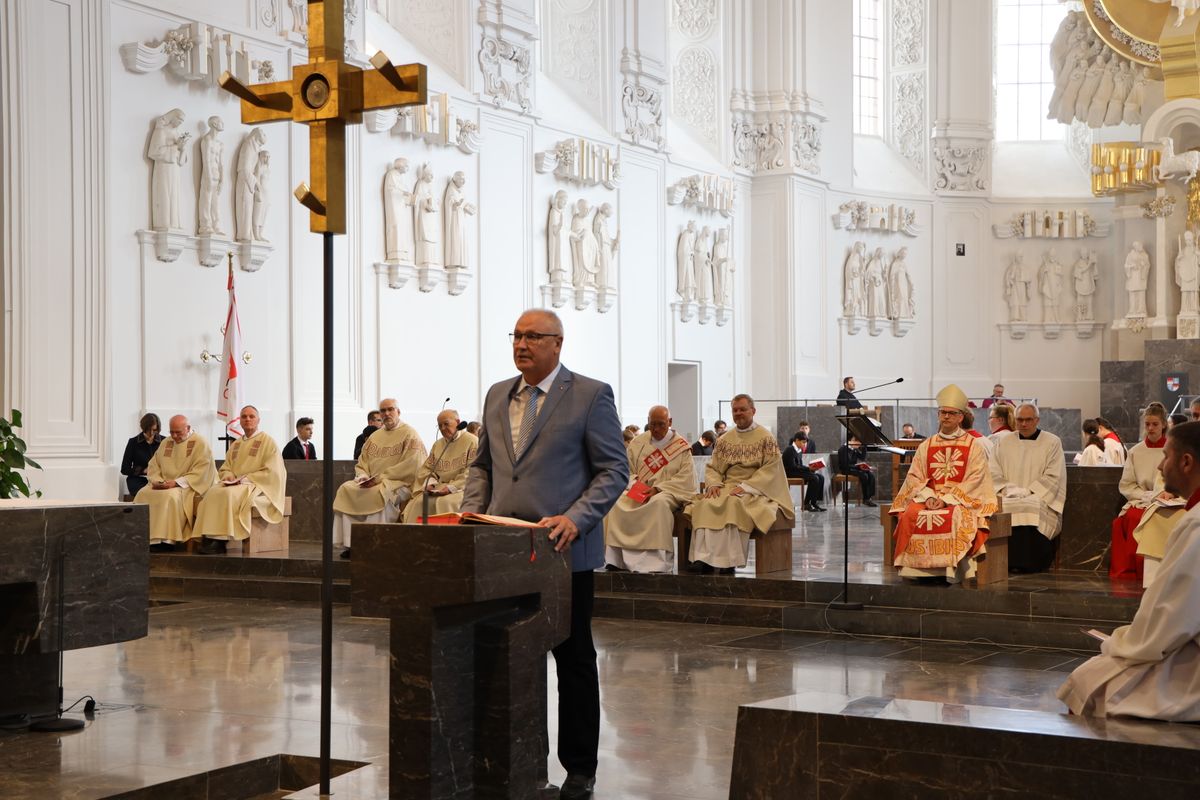 Generalvikar Vorndran wandte sich vor dem Schlusssegen an die Gläubigen im Bistum. Er wolle gerne, wie der Bischof das in der Predigt gefordert habe, „Feuer und Flamme“ sein für die Menschen. „Als neuer Generalvikar verstehe ich mich dabei als Teamplayer.“ Er dankte dem Bischof für das in ihn gesetzte Vertrauen. Zugleich bat Vorndran um das Vertrauen aller, die sich engagierten, „in den vielen Kirchenverwaltungen und Pfarrgemeinderäten, in den Dekanatsräten und dem Diözesanrat, in unseren Gemeinden, in den Kreisen und Gruppen, wo der Glaube lebendig wird“. In seiner ersten Arbeitswoche als Generalvikar habe er voller Dankbarkeit gespürt, „wie sehr ich ‚Feuer und Flamme‘ bin für diese neue, verantwortungsvolle Aufgabe“. Mit den Worten des Propheten Jesaja erneuere er daher gegenüber Bischof Jung seine Bereitschaft zum Dienst als dessen Generalvikar: „Hier bin ich. Sende mich.“