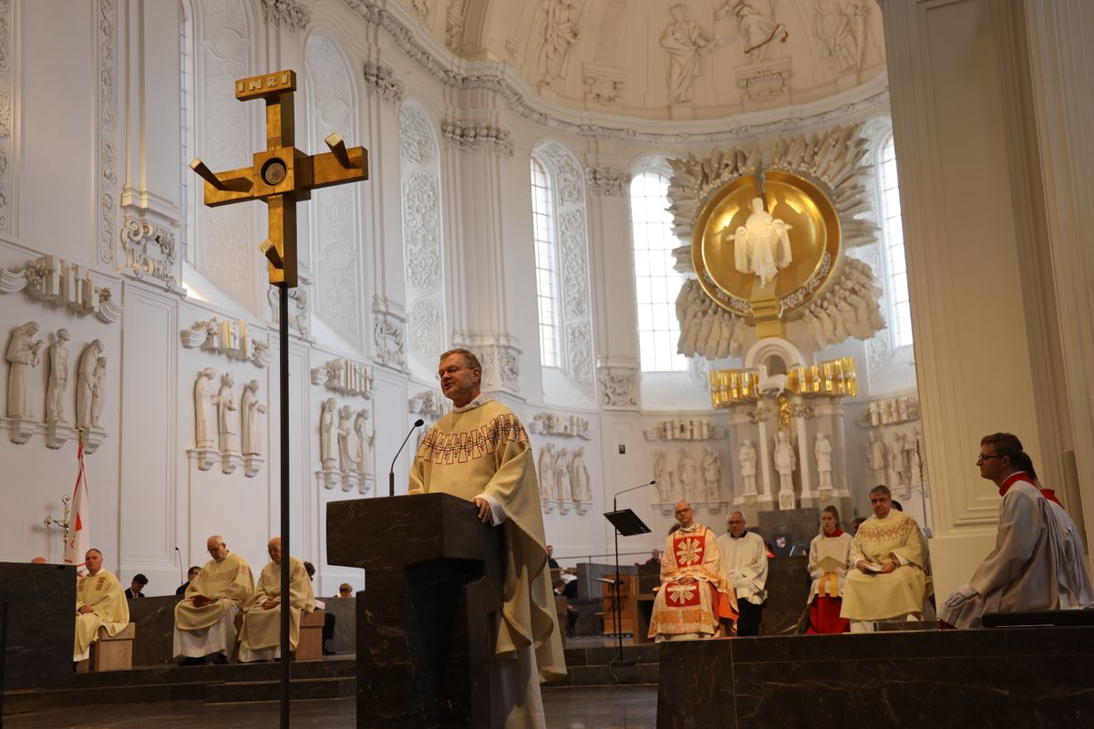 Gott sei der Not schon lange nahe, bevor die Menschen diese sähen, sagte Bischof Jung weiter. „Unsere persönlichen Gottesvorstellungen werden damit ganz schön auf die Probe gestellt. Glauben wir an einen solchen Gott, der hinabsteigt in die Not, in Jesus Christus am Kreuz hinabsteigt in den Tod? Und lassen wir uns von diesem Gott in den Dienst nehmen, der da ist, um alle aus dem Exil herauszuführen in das Land des Lebens? Eine echte Provokation, jeden Tag neu.“
