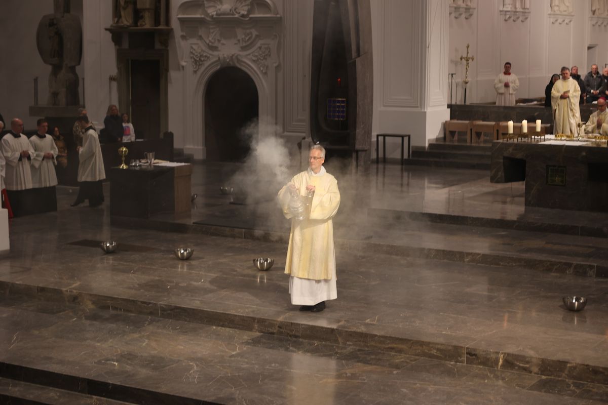 Mit der Messe vom Letzten Abendmahl hat Bischof Dr. Franz Jung am Gründonnerstag, 28. März, im Würzburger Kiliansdom die drei „österlichen Tage vom Leiden und Sterben, von der Grabesruhe und der Auferstehung des Herrn“ eröffnet.