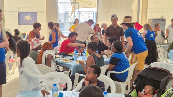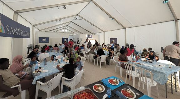 Nikosia/Würzburg (POW) Ein drückend heißer Nachmittag in Nikosia auf Zypern. Im Aufnahmelager Pournara haben sich mehrere Dutzend Menschen versammelt. An Tischen mit Tischdecke, Blumenschmuck und Gewürzstreuern wird Suppe verteilt, dazu Reis, Gemüse und nach Wahl Fisch, Hähnchen oder Linsen. Einige der Gastgeber sitzen an den Tischen und unterhalten sich mit den Gästen. Schon die Atmosphäre macht deutlich: Hier ist kein Kantinenbetrieb, sondern ein „Restaurant der Freundschaft“. Würzburger Ehrenamtliche der Gemeinschaft Sant‘Egidio tragen Tabletts, bedienen, lächeln. „Allein dieser kleine Unterschied – dass jemand den Teller an den Platz bringt – verändert die Stimmung“, sagt Wirtschaftsingenieurin Theresa Kroschewski (29).
