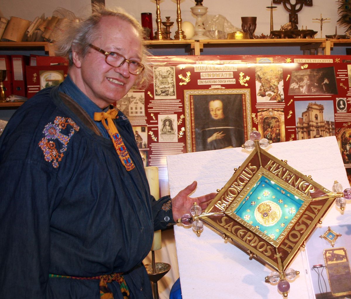 1939 wurde er in Würzburg in eine traditionsreiche Goldschmiedefamilie hineingeboren. Seine Lehre absolvierte er von 1953 bis 1957 bei seinem Vater Joseph Amberg der Jüngere. Daran schloss sich die Studienzeit an der Werkkunstschule Schwäbisch Gmünd und an der Akademie der bildenden Künste in München an. 1963 legte Michael Amberg seine Meisterprüfung ab. Er trat in die Fußstapfen seiner Vorfahren und schafft vor allem Werke für den kirchlichen Gebrauch. Dabei sieht er seine Kunst immer im Dienste der christlichen Verkündigung. „Sein Können wird von Auftraggebern weit über die Diözese Würzburg hinaus geschätzt“, erklärt Dr. Wolfgang Schneider, stellvertretender Leiter des Kunstreferats des Bistums Würzburg. Europaweit finden sich Werke in der typischen Handschrift Ambergs, die nicht zuletzt von der mittelalterlichen Goldschmiedekunst angeregt ist. Entsprechend ist es ihm immer auch ein Anliegen, die Werke der alten Meister zu restaurieren und zu bewahren. So restaurierte er von 1964 bis 1969 den großen romanischen Radleuchter von Kloster Großcomburg. Mit besonderer Leidenschaft und Hingabe entwirft und fertigt Amberg kostbare Gehäuse für die Reliquien der Heiligen. Beispielhaft dafür sind die Reliquiare für die Würzburger Seligen Liborius Wagner und Georg Häfner, die in der Krypta des Würzburger Doms aufgestellt sind.