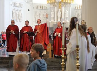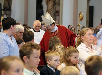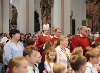 Mit rund 1300 Kommunionkindern und ihren Begleitern hat Weihbischof Paul Reder am Montag, 8. Juli, einen Gottesdienst im Kiliansdom gefeiert.
